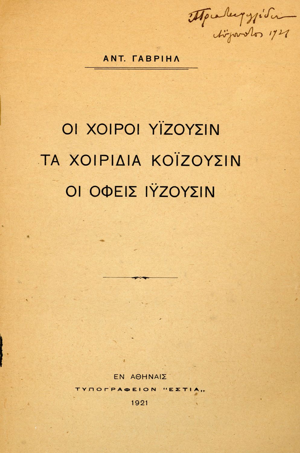Τίτλος: Οι χοίροι ιύζουσιν, τα χοιρίδια κοΐζουσιν, οι όφεις ιύζουσιν (Αλφαβητάριον Παπαμάρκου)