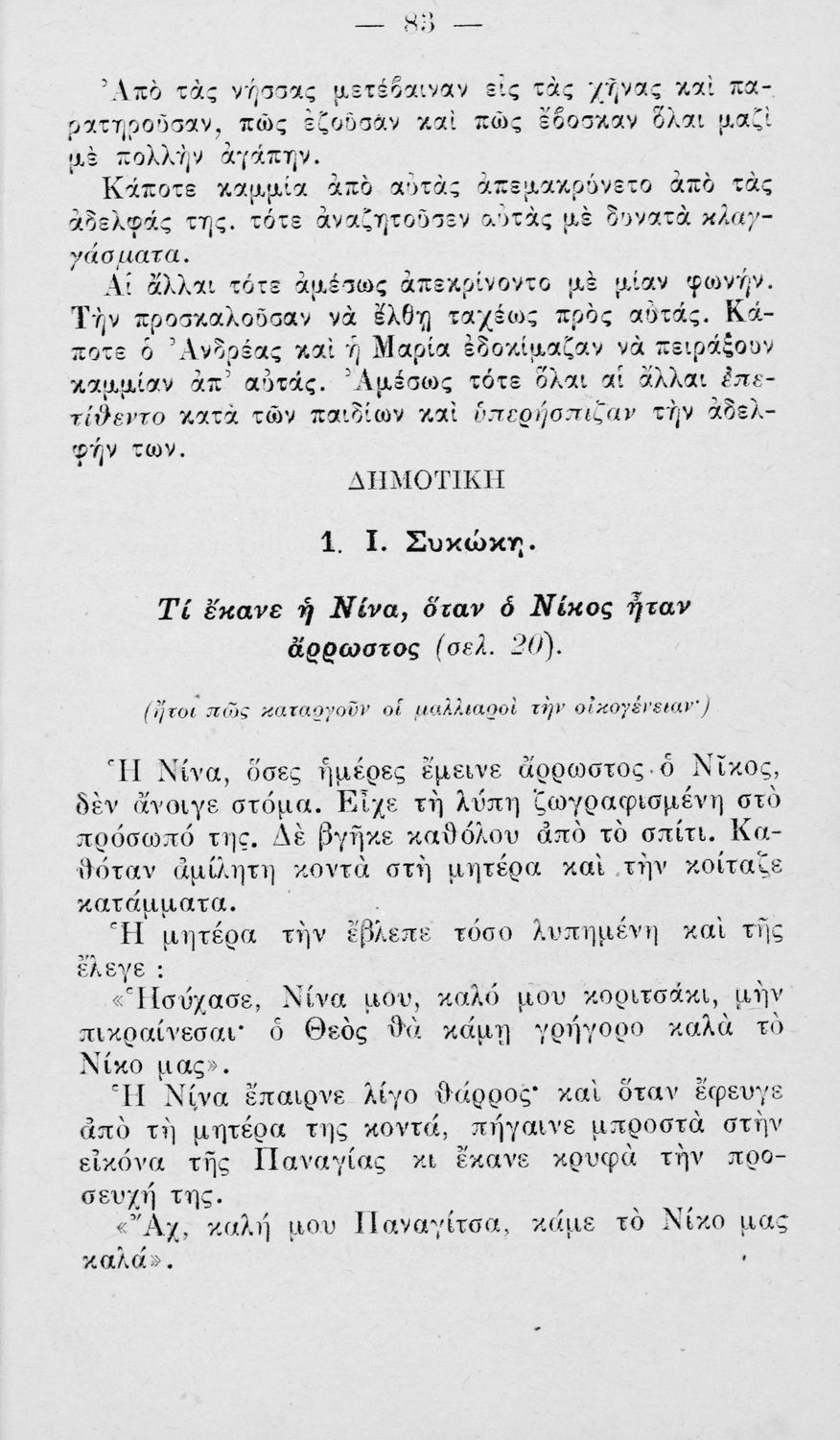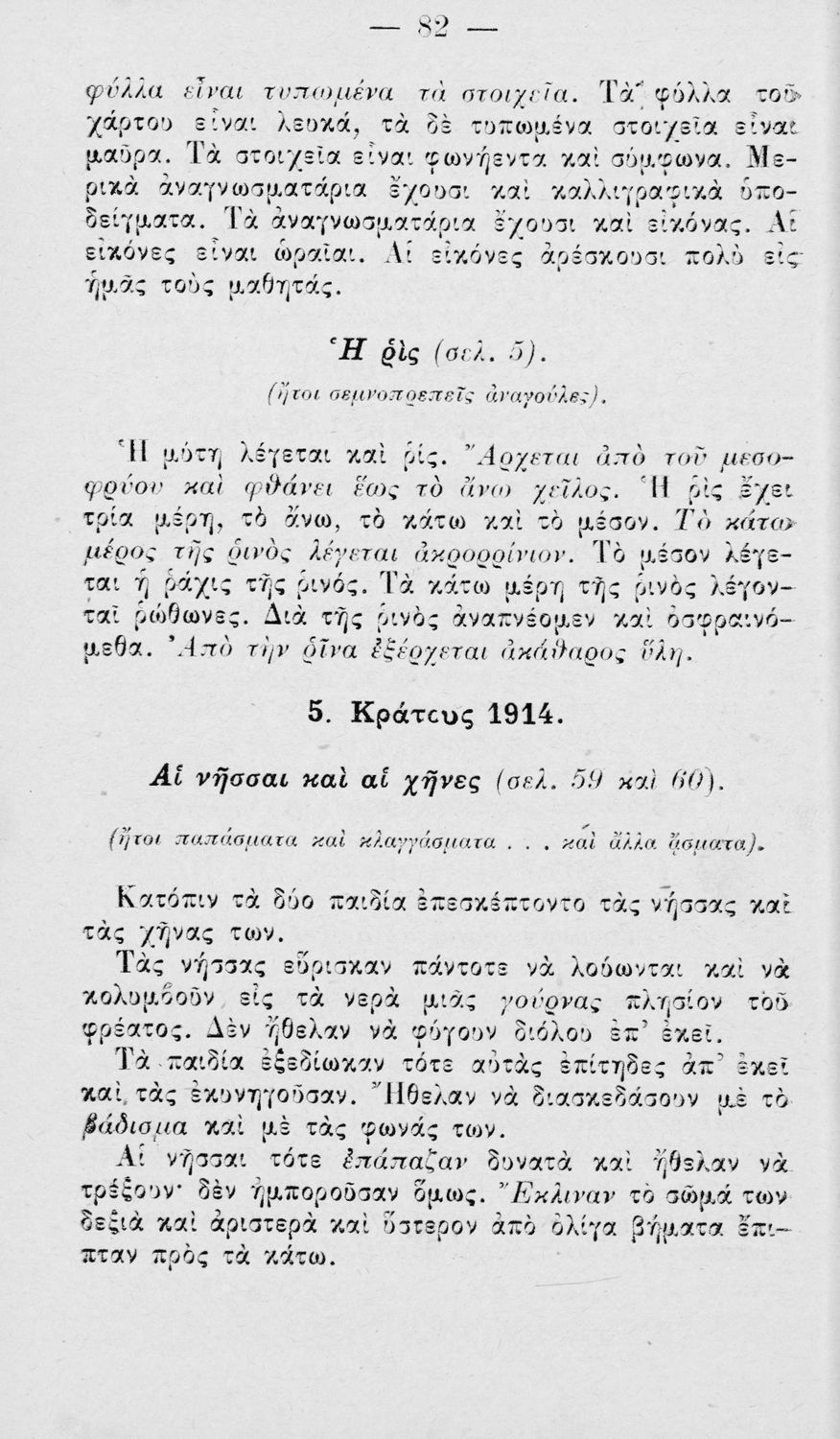 Κείμενο του Δ. Γληνού που, με σκωπτική διάθεση, αντιπαραβάλλει τα αναγνωστικά της πρώτης εκπαιδευτικής μεταρρύθμισης του Ε. Βενιζέλου όπως Τα ψηλά βουνά ή Το Αλφαβητάρι με τον ήλιο με αυτά της προηγούμενης ...