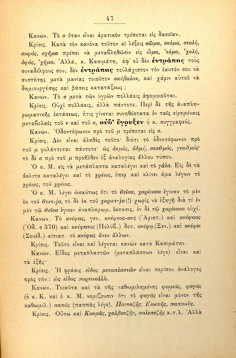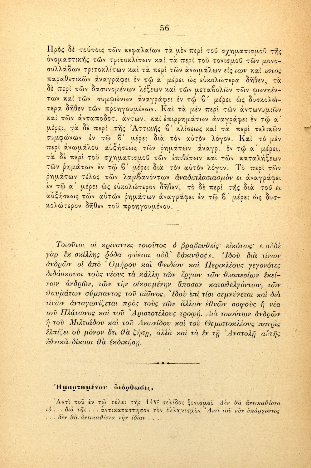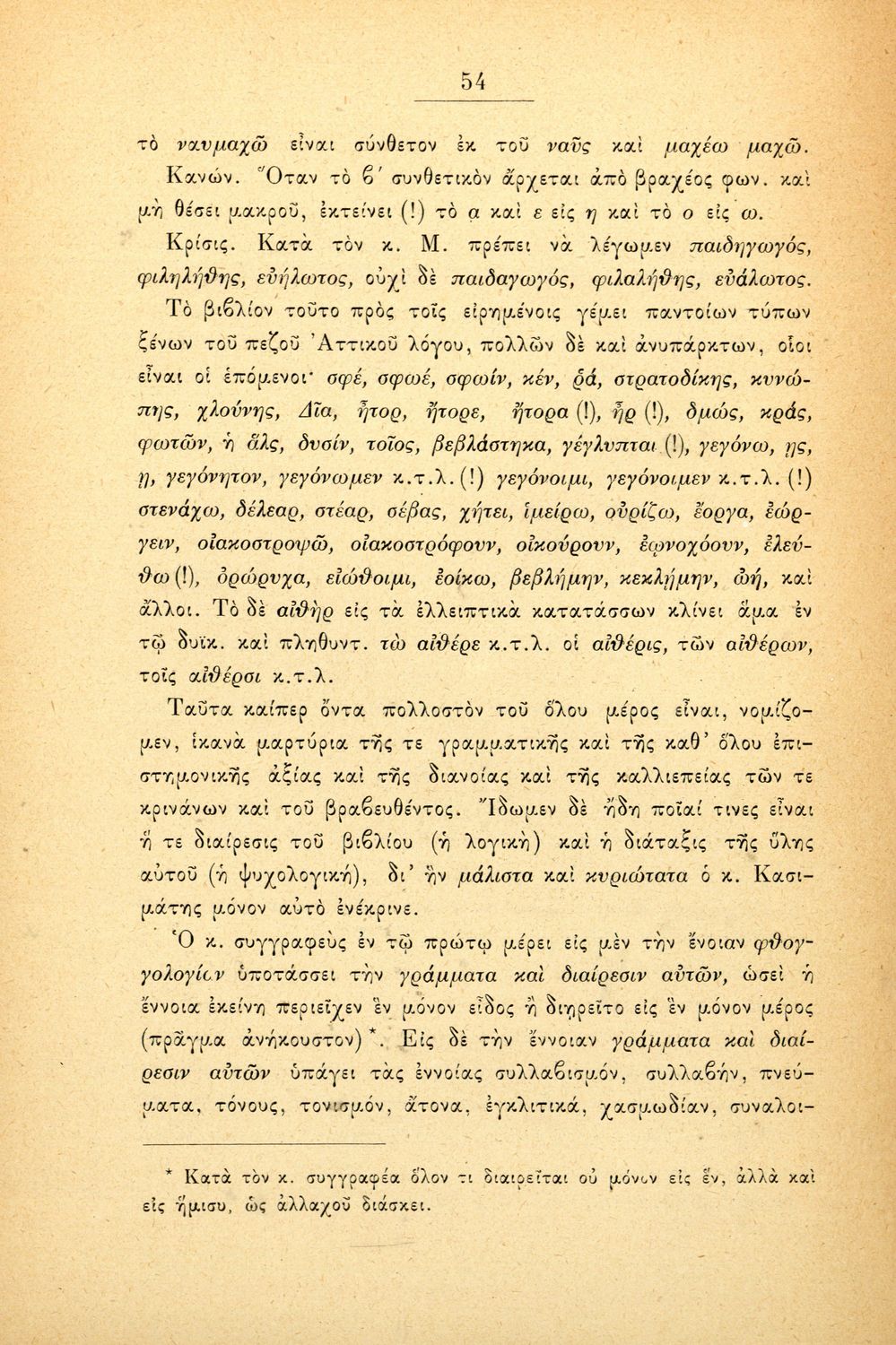 Σύγγραμμα που ασκεί δριμεία κριτική τόσο στην Ελληνική Γραμματική της Αττικής Διαλέκτου του Δημήτρη Μοσχίδη όσο και στην επιτροπή, υπό τον Κοσμά Κασιμάτη, που την ενέκρινε στον σχετικό διαγωνισμό του 1901.