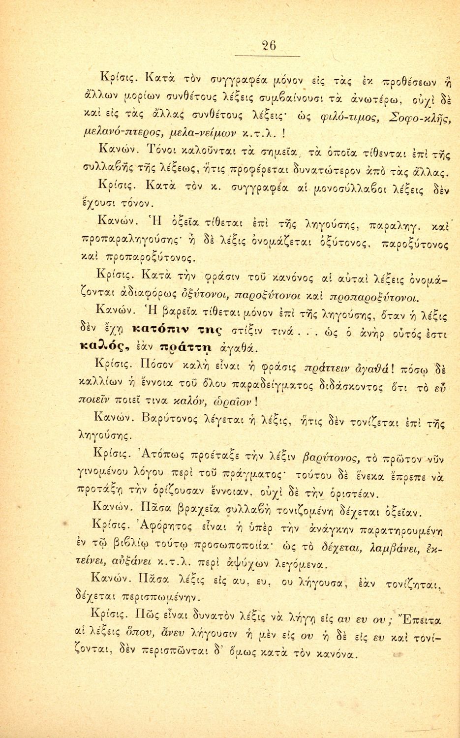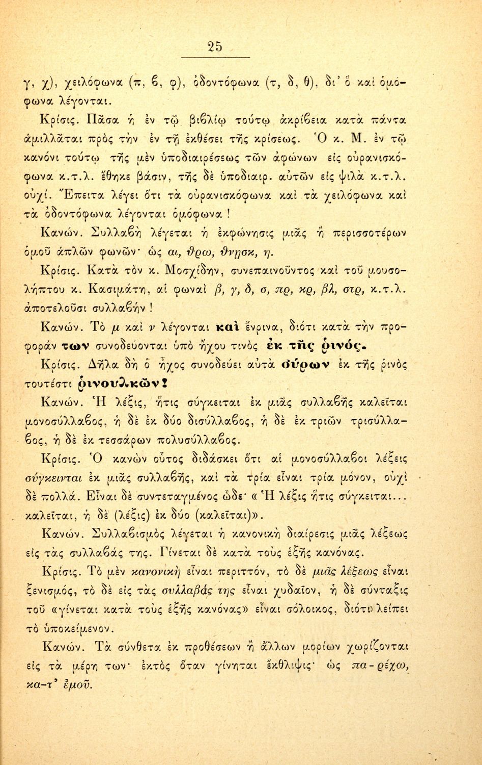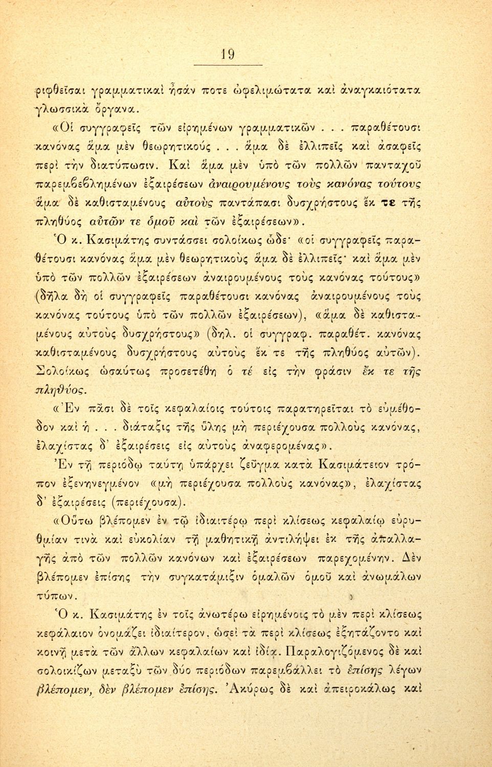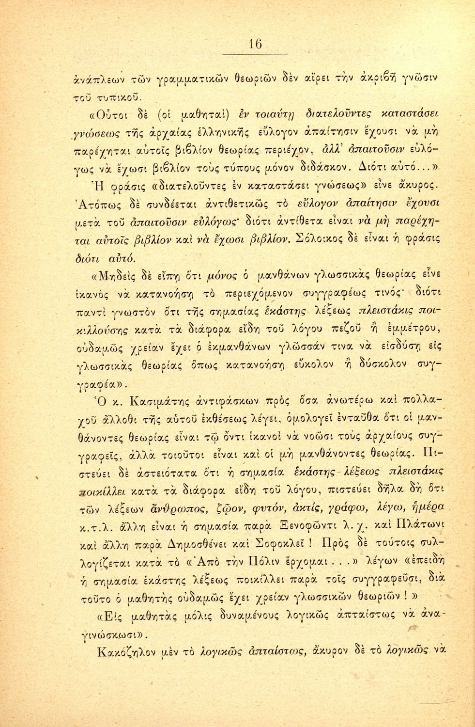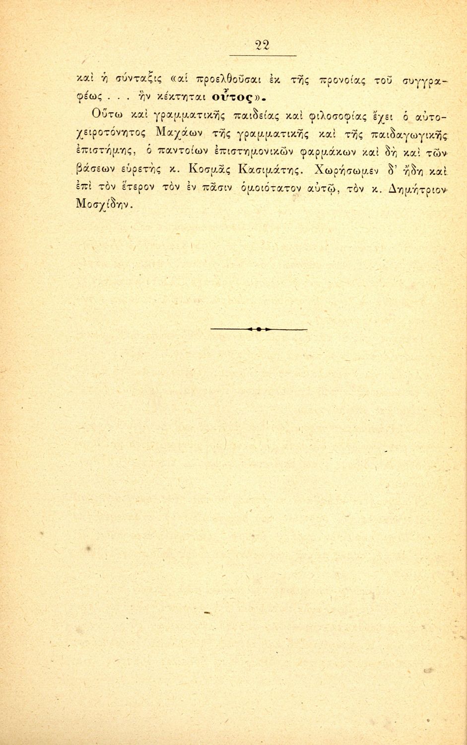 Σύγγραμμα που ασκεί δριμεία κριτική τόσο στην Ελληνική Γραμματική της Αττικής Διαλέκτου του Δημήτρη Μοσχίδη όσο και στην επιτροπή, υπό τον Κοσμά Κασιμάτη, που την ενέκρινε στον σχετικό διαγωνισμό του 1901.