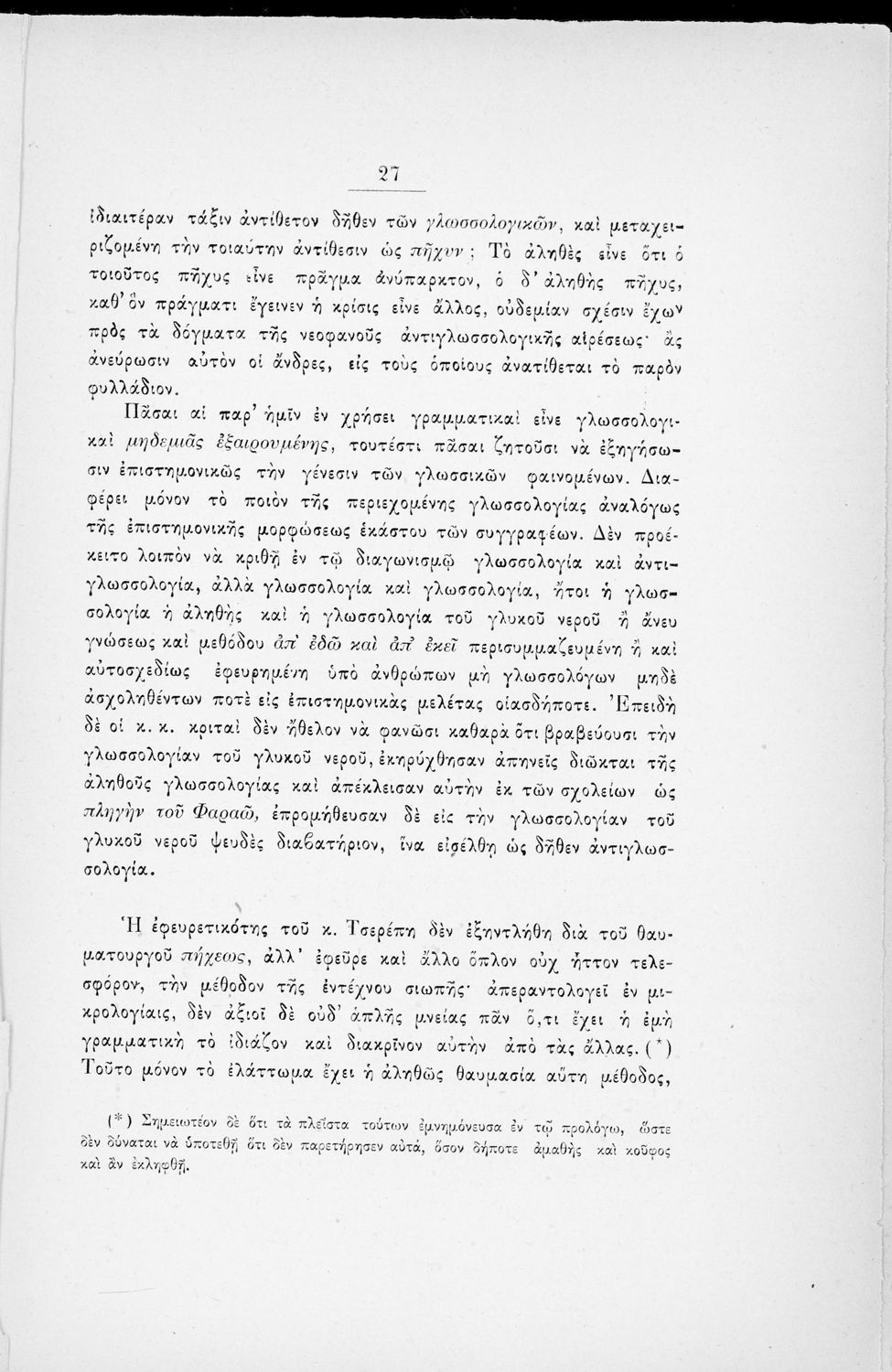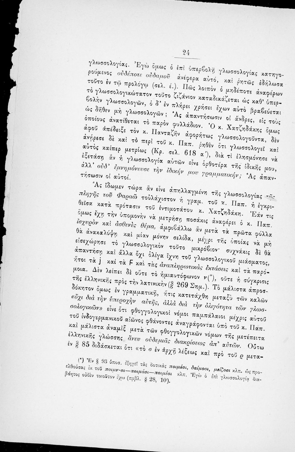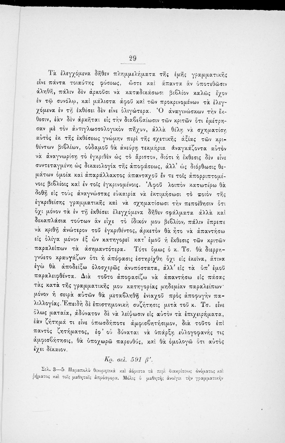 Παρουσίαση περιεχομένου: Σύγγραμμα του υφηγητή της Ελληνικής Φιλολογίας στο Εθνικό Πανεπιστήμιο Ανδρέα Σκία που ασκεί δριμεία κριτική στην επιτροπή κριτών για τα διδακτικά βιβλία την οποία αποτελούσαν οι Γ. Χατζηδάκης, Σπ. Βάσσης και Γ. Τσερέπης για την αρνητική κρίση που έλαβε η ελληνική γραμματική που είχε καταθέσει και για τη μεροληψία που έδειξαν προς τον ανταγωνιστή του Δ. Παπαγεωργίου.