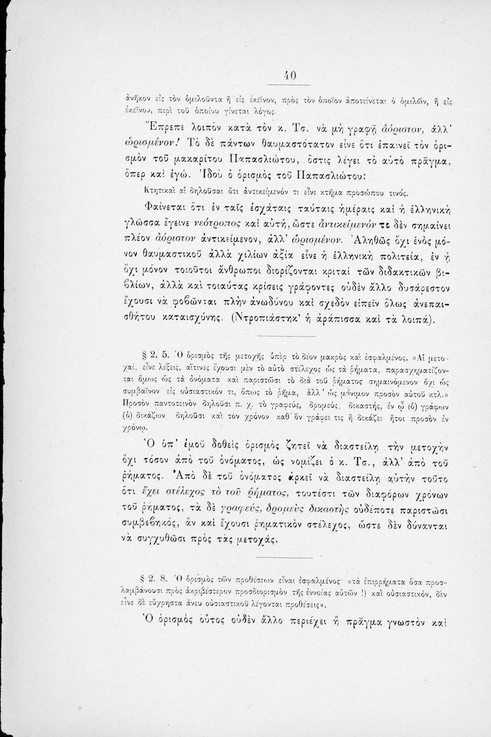 Παρουσίαση περιεχομένου: Σύγγραμμα του υφηγητή της Ελληνικής Φιλολογίας στο Εθνικό Πανεπιστήμιο Ανδρέα Σκία που ασκεί δριμεία κριτική στην επιτροπή κριτών για τα διδακτικά βιβλία την οποία αποτελούσαν οι Γ. Χατζηδάκης, Σπ. Βάσσης και Γ. Τσερέπης για την αρνητική κρίση που έλαβε η ελληνική γραμματική που είχε καταθέσει και για τη μεροληψία που έδειξαν προς τον ανταγωνιστή του Δ. Παπαγεωργίου.