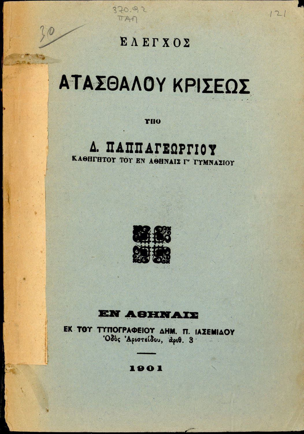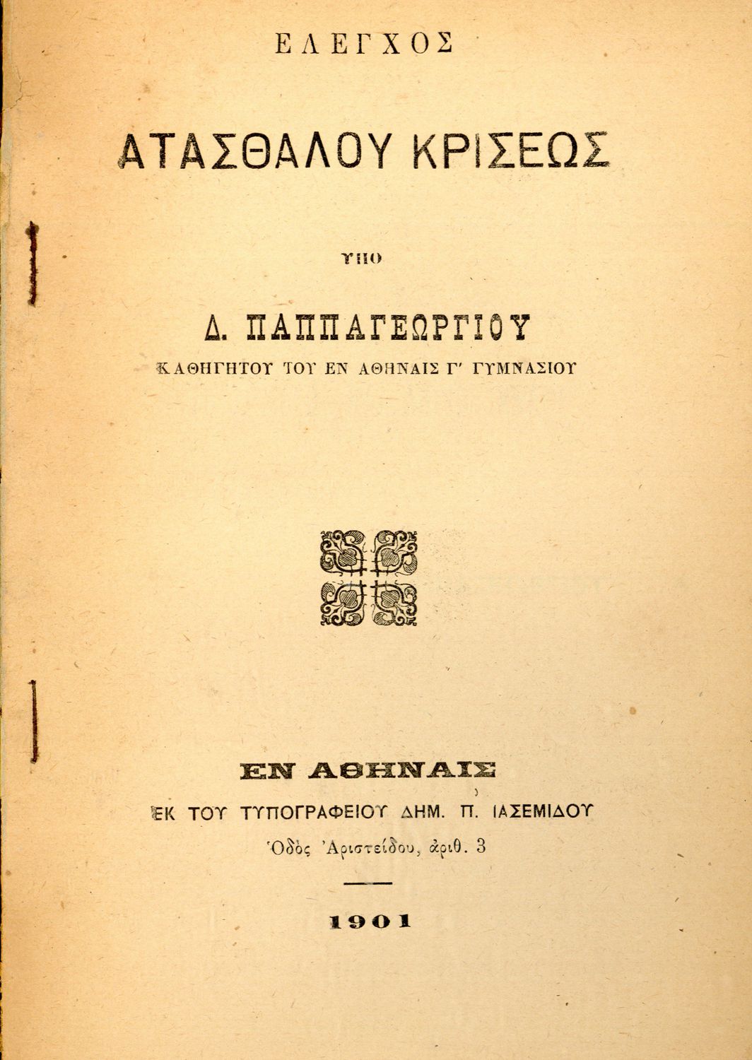 Εκδότης: Δημ. Π. Ιασεμίδης Έτος έκδοσης: 1901 Τόπος έκδοσης: Αθήνα |