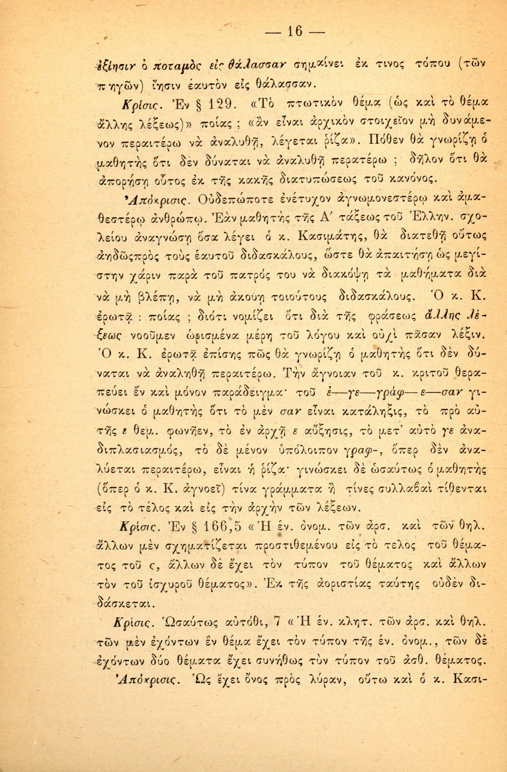 Σύγγραμμα που ασκεί δριμεία κριτική στην επιτροπή για τα διδακτικά βιβλία υπό τον Κοσμά Κασιμάτη για την απόρριψη της γραμματικής που ο συγγραφέας είχε υποβάλει προς κρίση. Ο συγγραφέας δεν παραλείπει να σχολιάσει και την Ελληνική Γραμματική της Αττικής Διαλέκτου του Δημήτρη Μοσχίδη που είχε λάβει τη σχετική έγκριση στο διαγωνισμό του 1901.