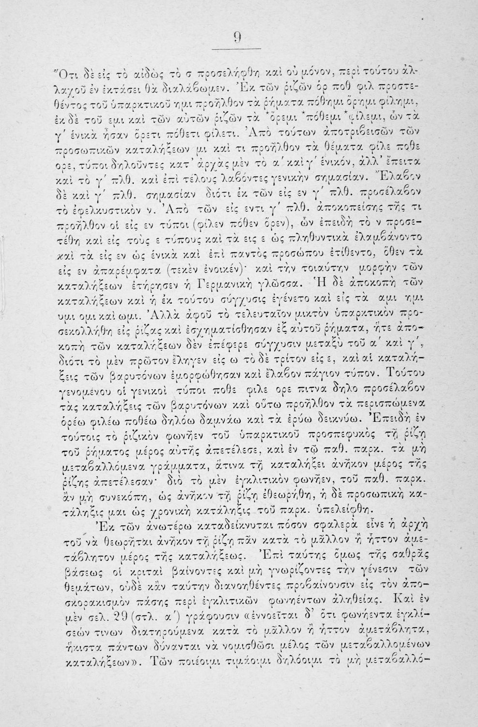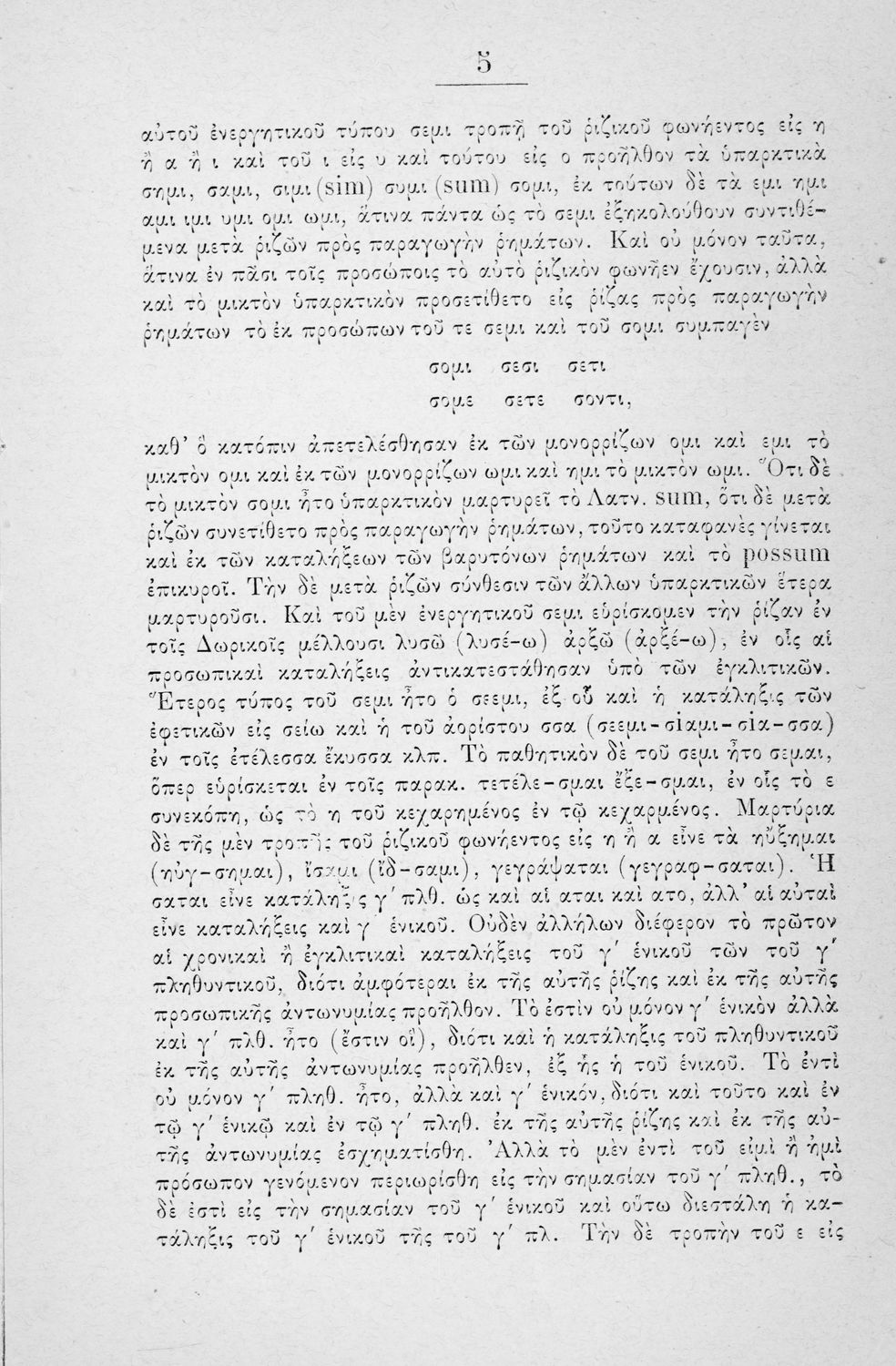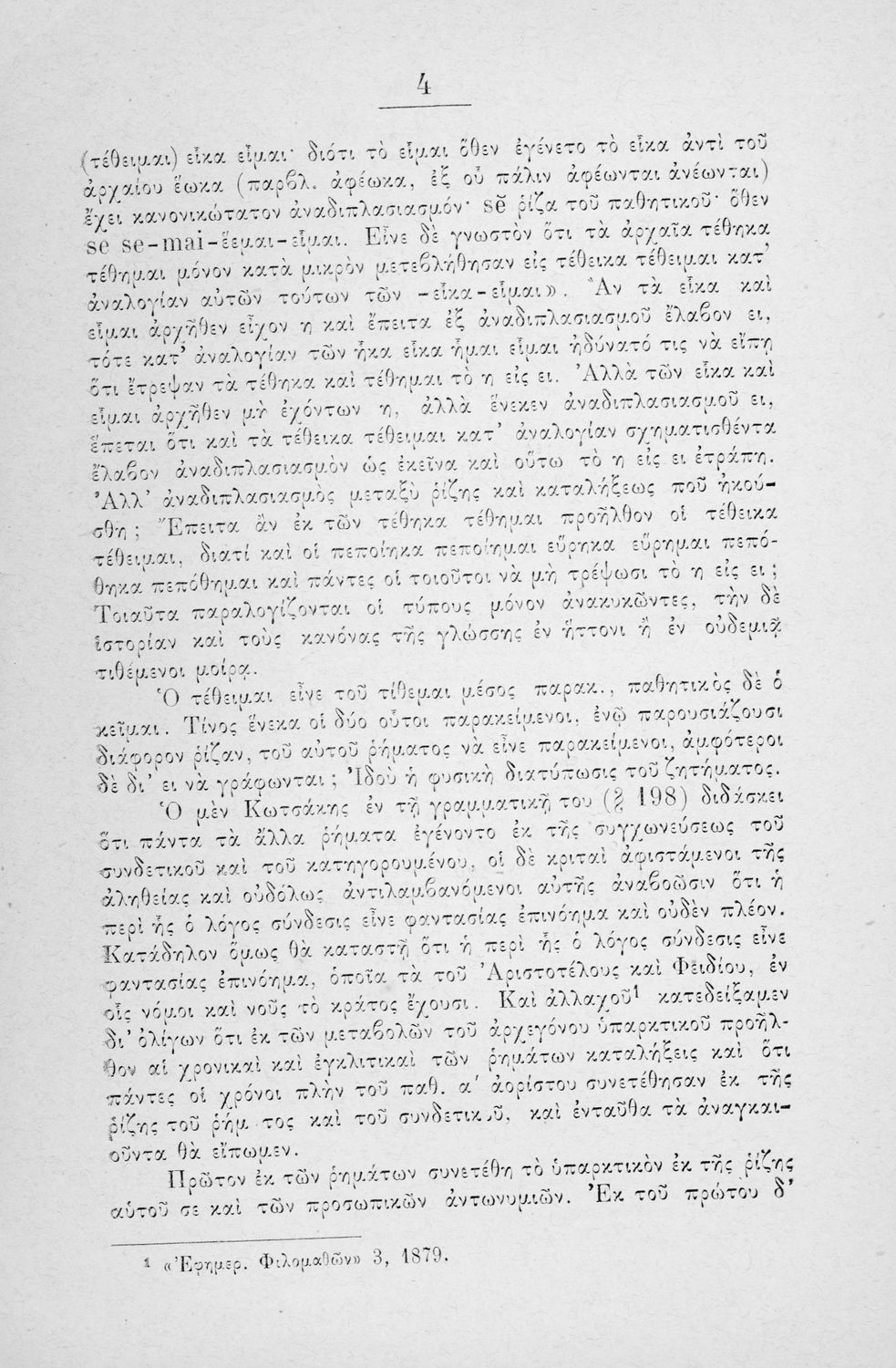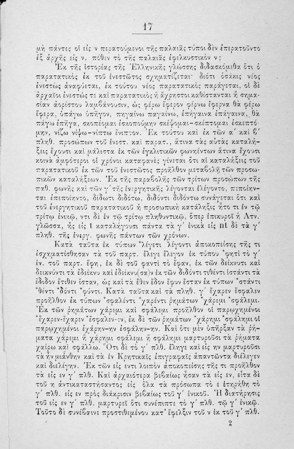 Γλώσσα: Καθαρεύουσα Παρουσίαση περιεχομένου: Επιστημονική μελέτη που κατηγορεί τα μέλη της επιτροπής για την έγκριση των διδακτικών βιβλίων γραμματικής ότι, αποδεχόμενοι την ινδική γλώσσα ως μητέρα της ελληνικής, αμφισβητούν τη δισχιλιετή αυθυπαρξία της. |
