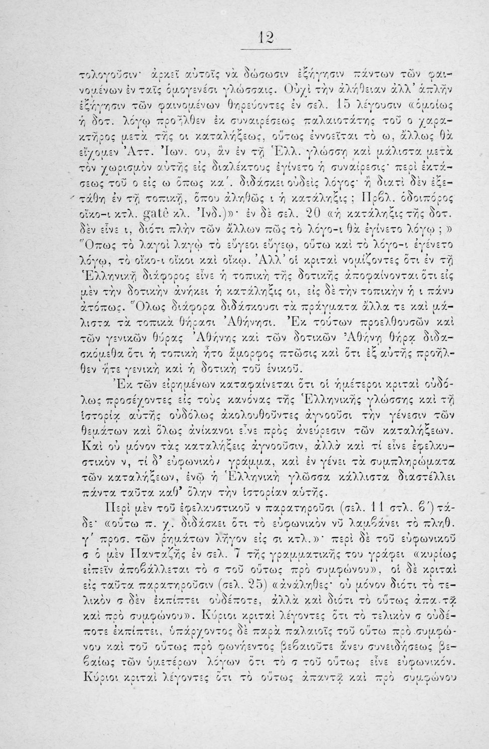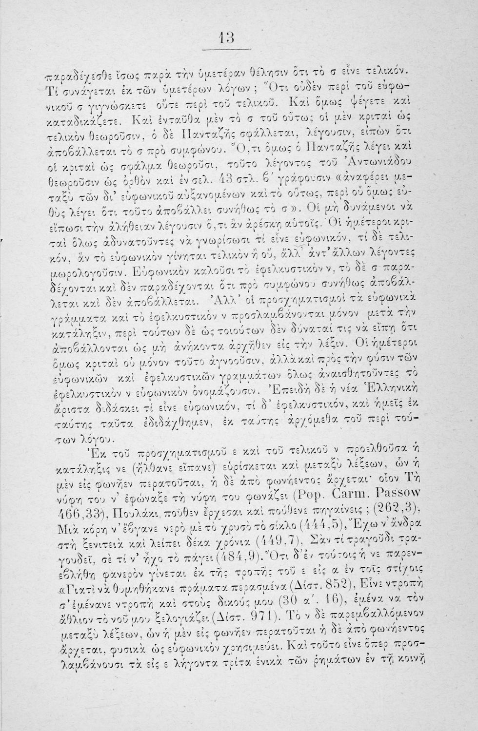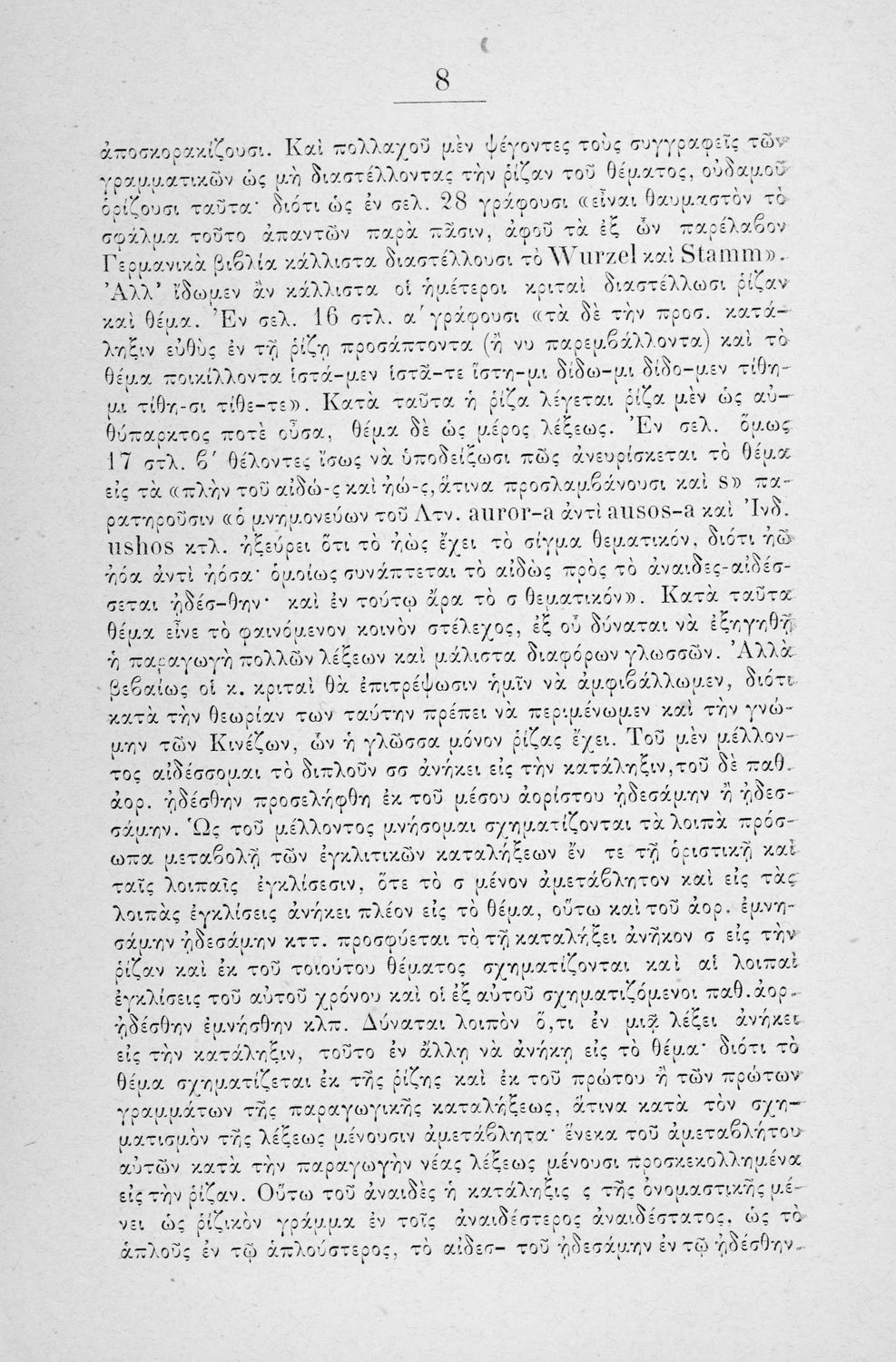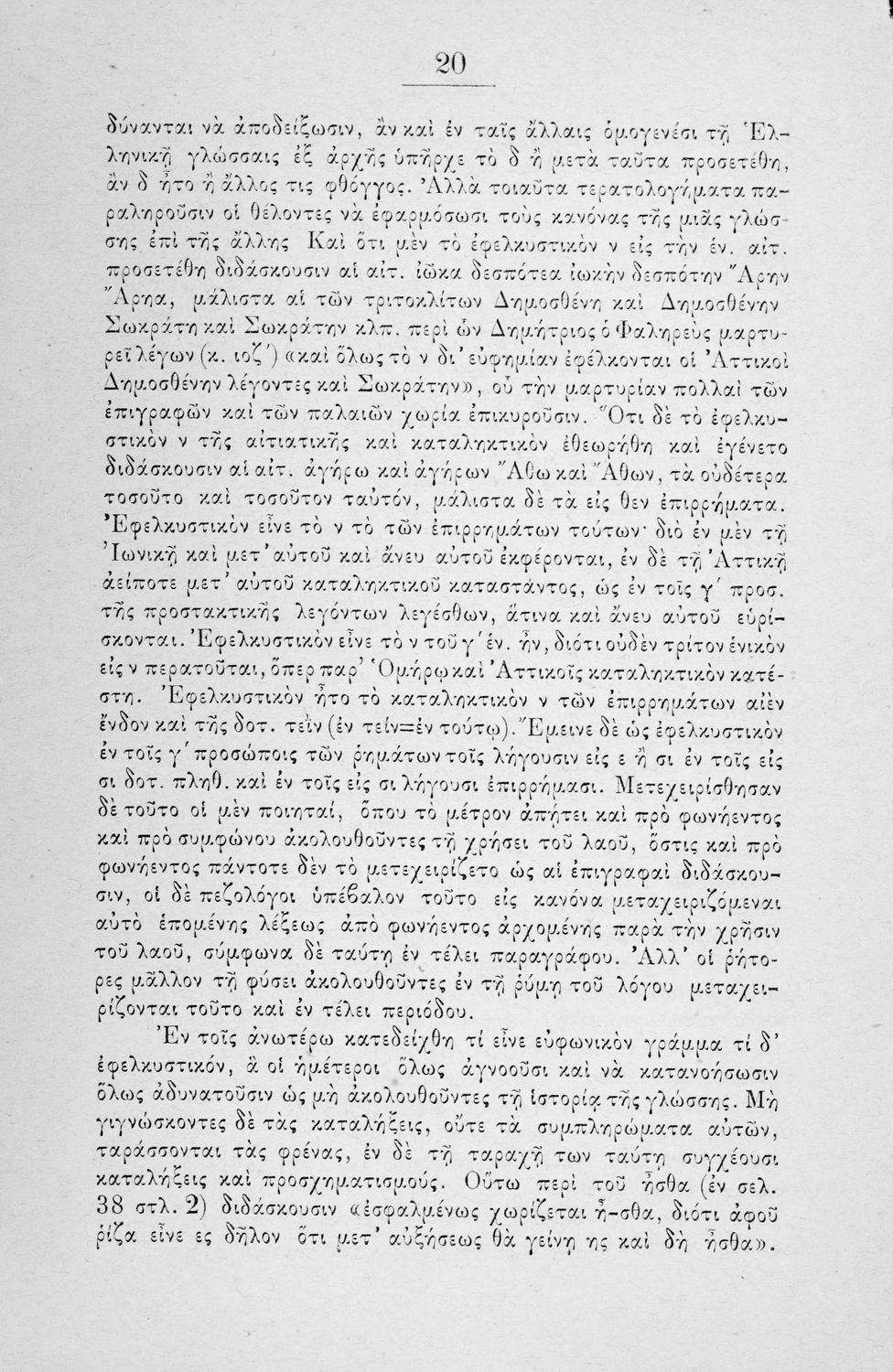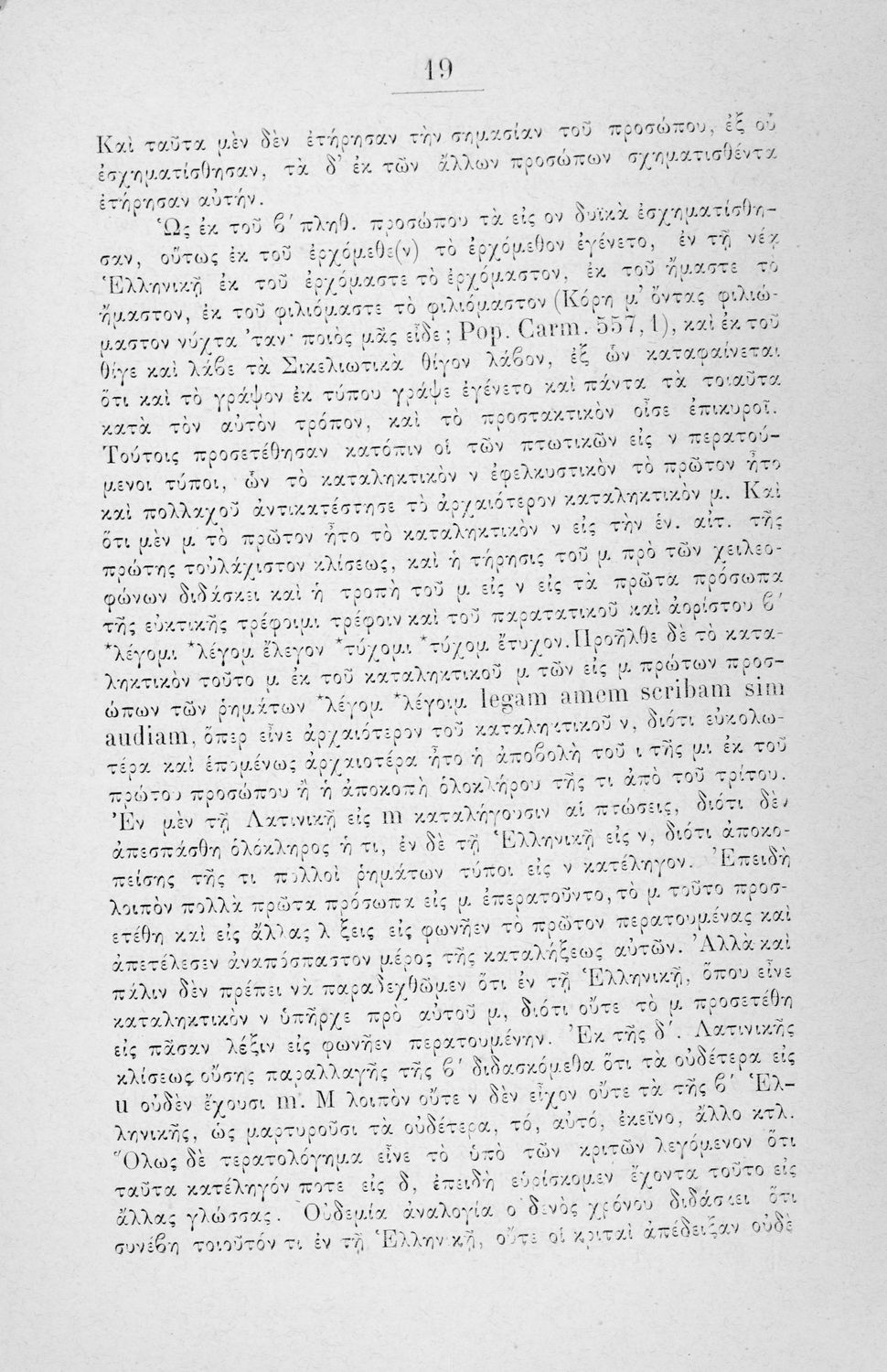 Γλώσσα: Καθαρεύουσα Παρουσίαση περιεχομένου: Επιστημονική μελέτη που κατηγορεί τα μέλη της επιτροπής για την έγκριση των διδακτικών βιβλίων γραμματικής ότι, αποδεχόμενοι την ινδική γλώσσα ως μητέρα της ελληνικής, αμφισβητούν τη δισχιλιετή αυθυπαρξία της. |