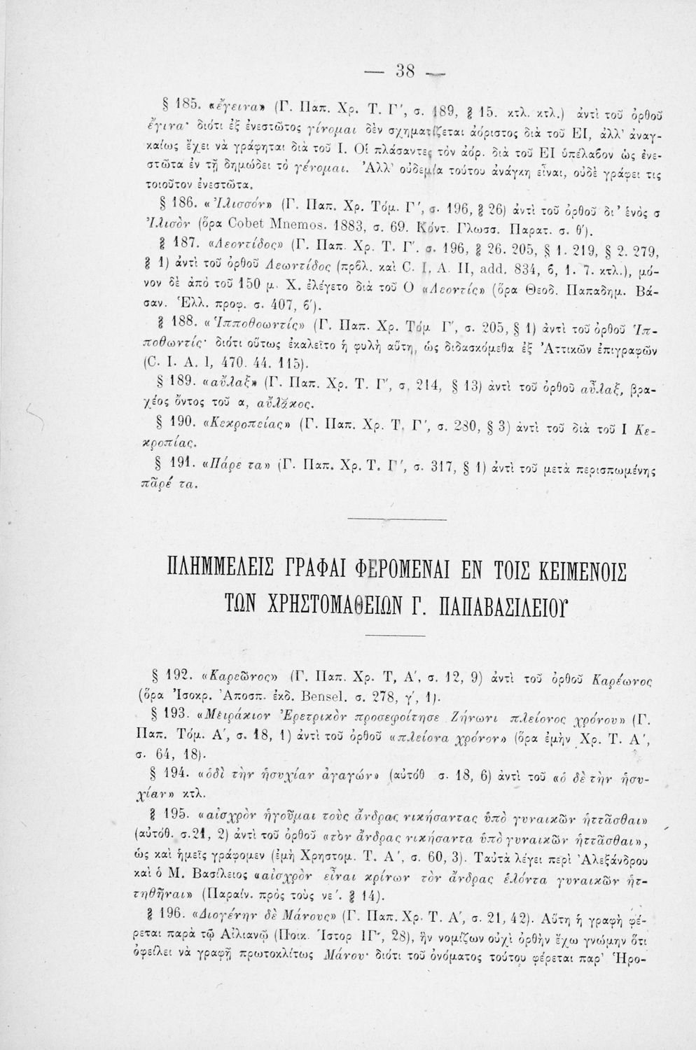 Σύγγραμμα που περιλαμβάνει την απάντηση του Γεώργιου Δ. Ζηκίδη στο Γεωργίου Παπαβασιλείου σχετικά με τις κατηγορίες που εξαπέλυσε εναντίον του για λογοκλοπή μέρους της Χρηστομάθειάς του.