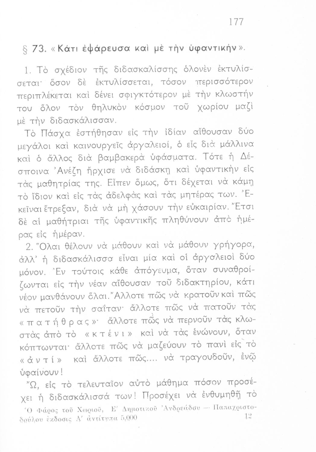 Τίτλος: Ο Φάρος του Χωριού. Αναγνωστικόν Ε΄ Δημοτικού