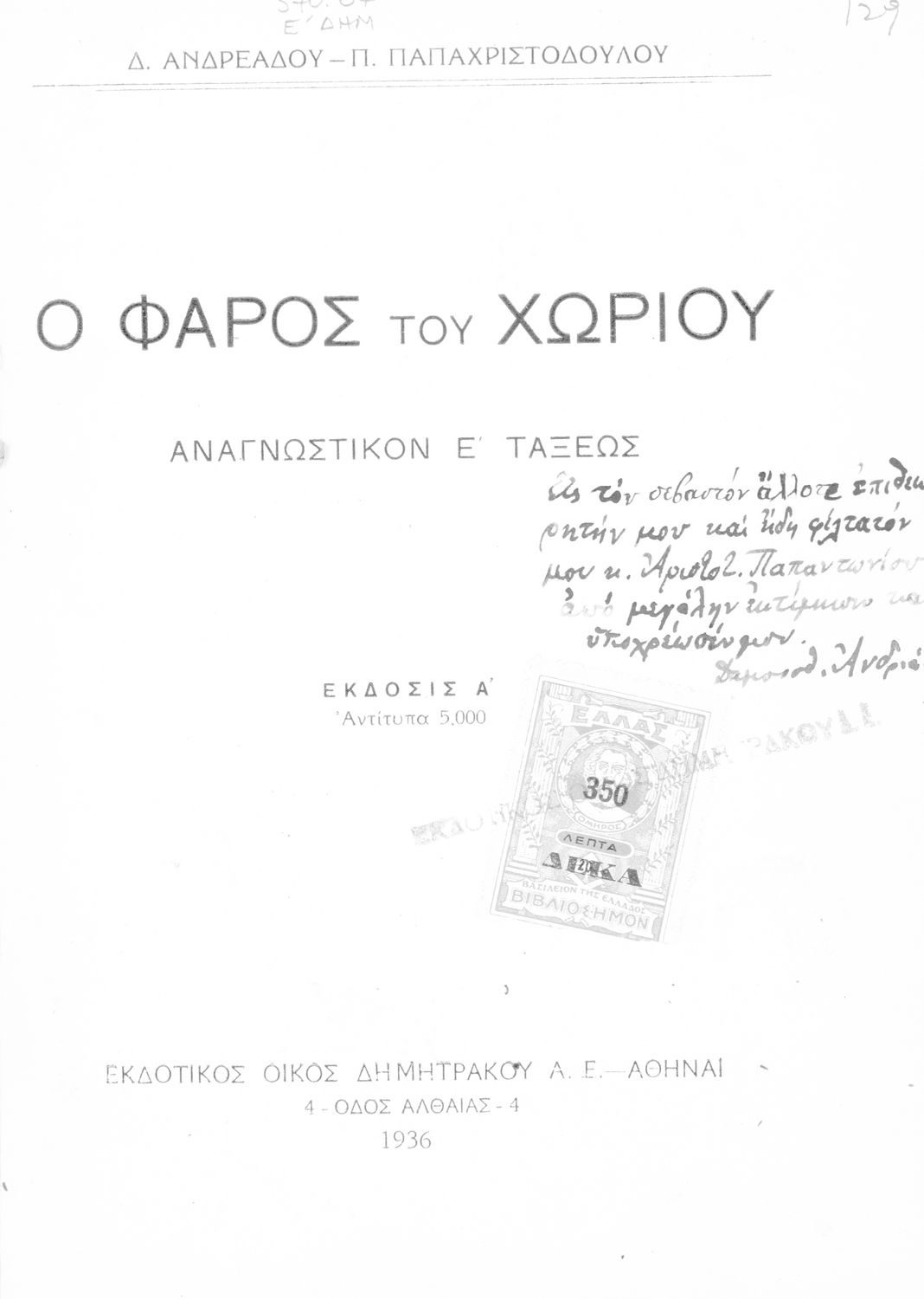 Τίτλος: Ο Φάρος του Χωριού. Αναγνωστικόν Ε΄ Δημοτικού