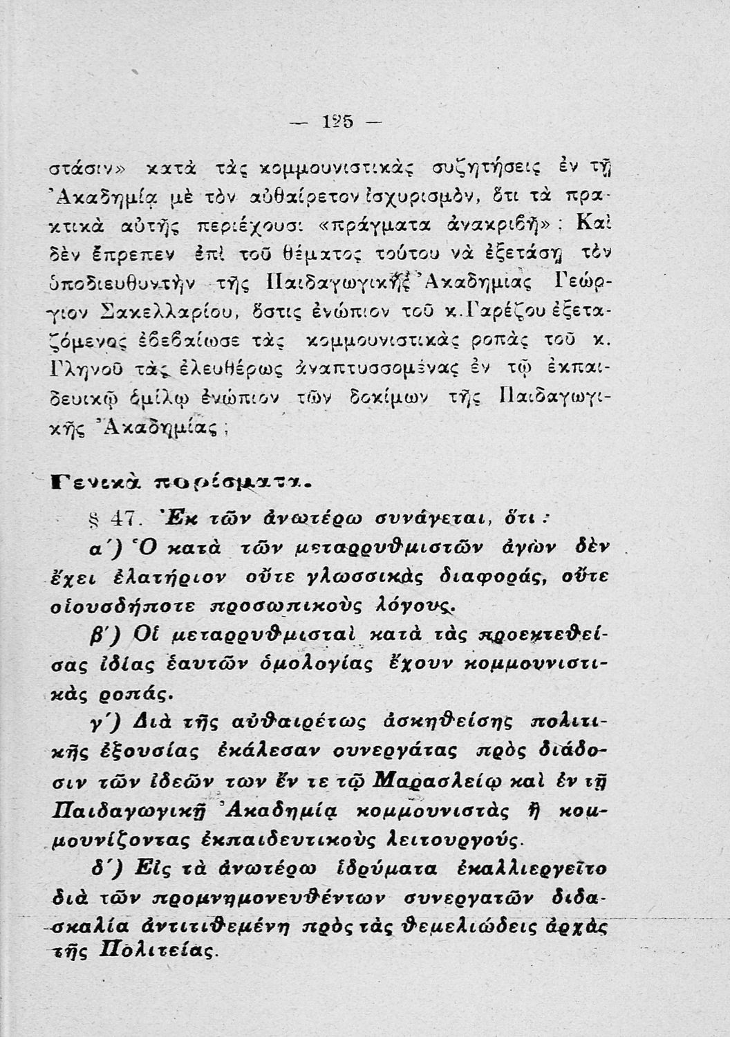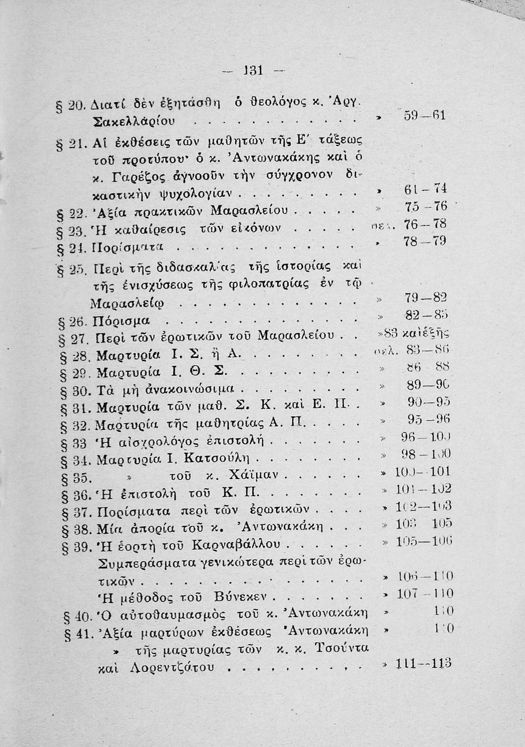 Παρουσίαση περιεχομένου: Εισηγητική έκθεση του Αρεοπαγίτη Γ. Αντωνακάκη προς την Βουλή των Ελλήνων για την υπόθεση των Μαρασλειακών.