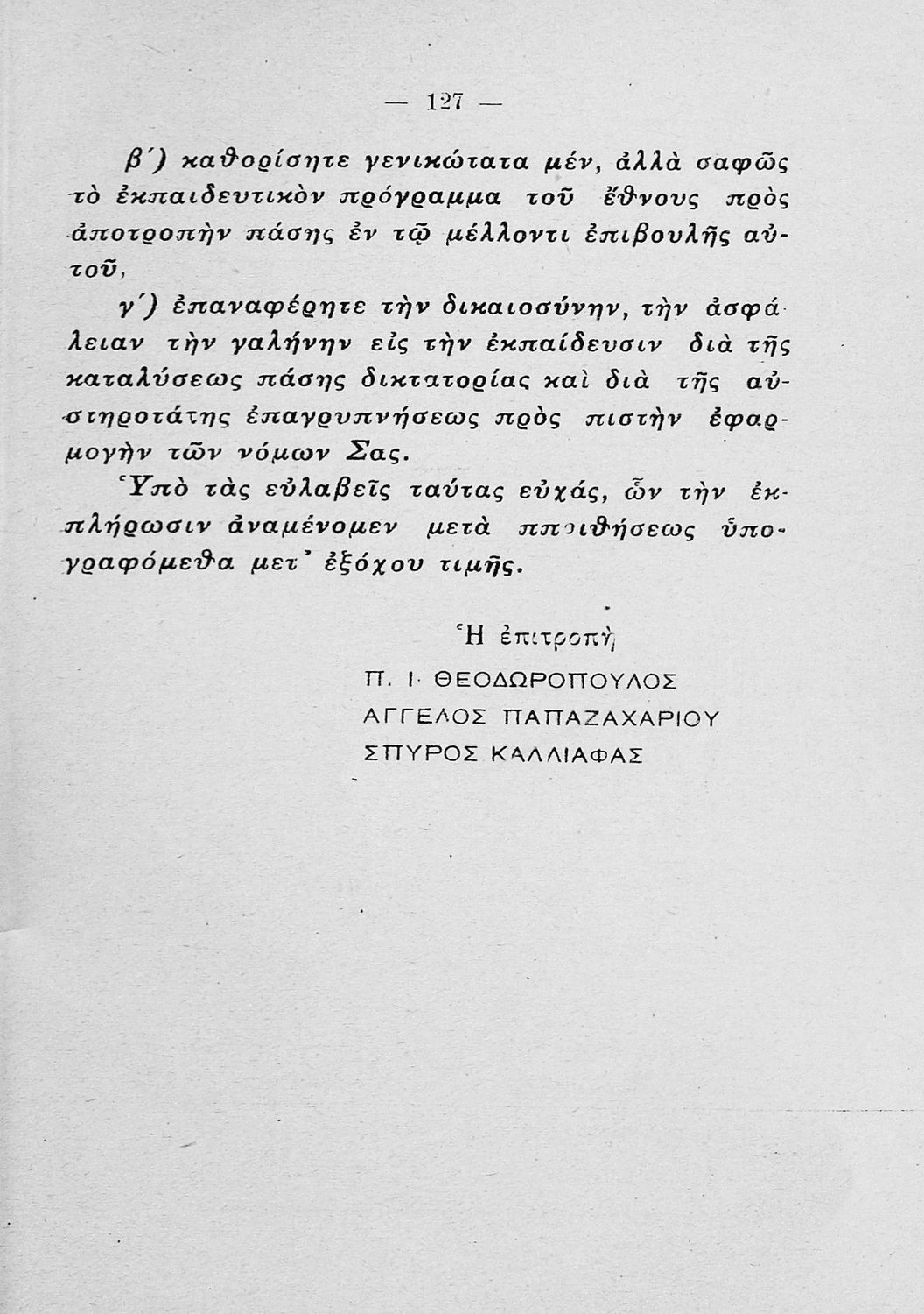 Ν. Κοντόπουλος, Δ. Πετρόπουλος, Γ. Σπυριδάκης
