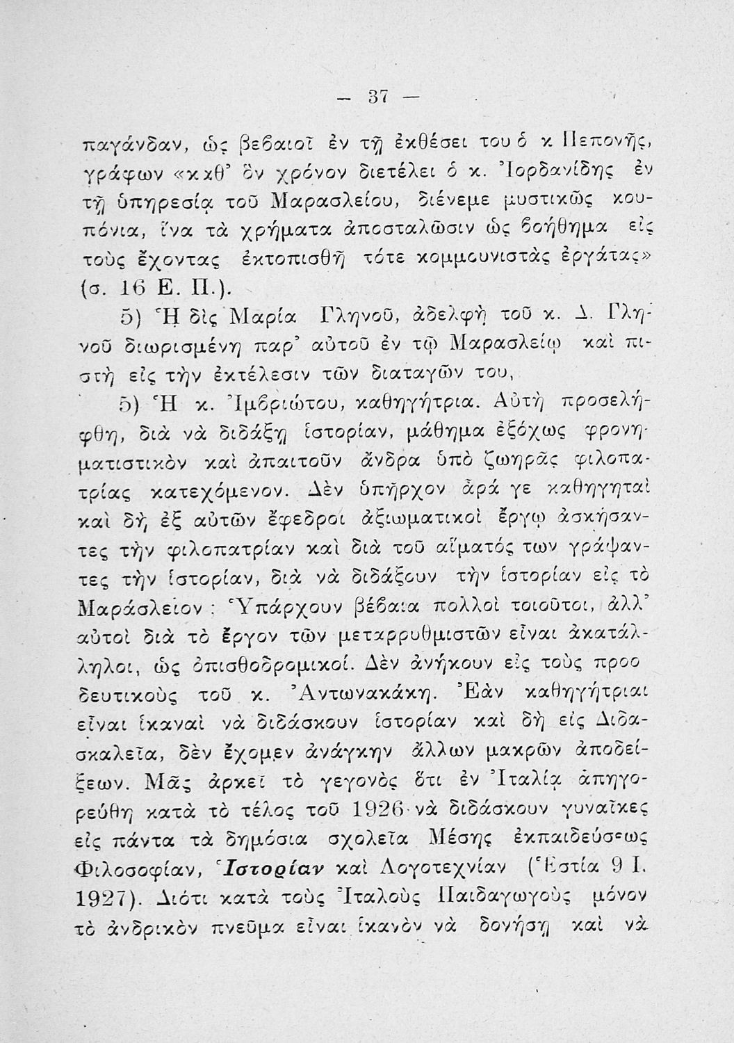 Παρουσίαση περιεχομένου: Εισηγητική έκθεση του Αρεοπαγίτη Γ. Αντωνακάκη προς την Βουλή των Ελλήνων για την υπόθεση των Μαρασλειακών.