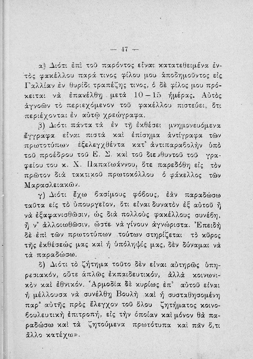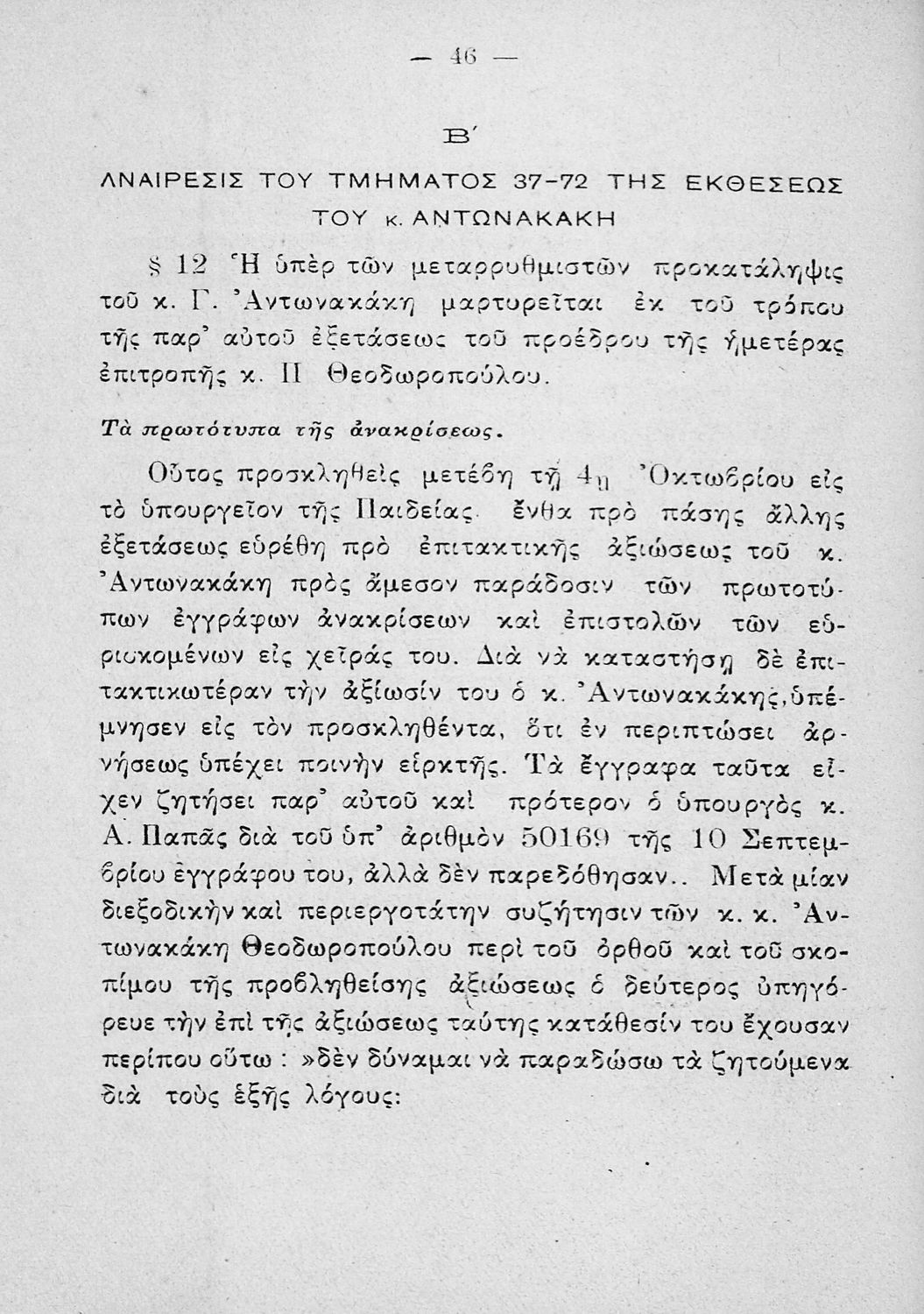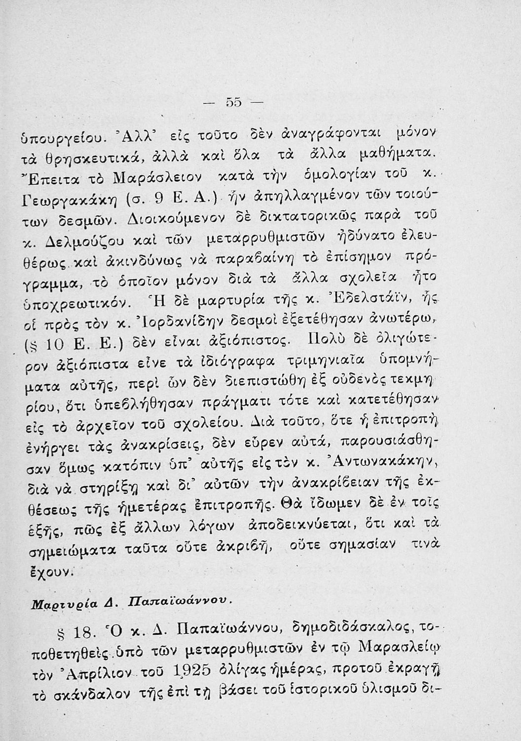 Παρουσίαση περιεχομένου: Εισηγητική έκθεση του Αρεοπαγίτη Γ. Αντωνακάκη προς την Βουλή των Ελλήνων για την υπόθεση των Μαρασλειακών.