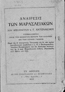 Αναίρεσις των Μαρασλειακών του αρεοπαγίτου κ. Γ. Αντωνακάκη, υποβαλλόμενη προς την σεβαστήν Βουλήν των Ελλήνων και την κοινήν γνώμην
