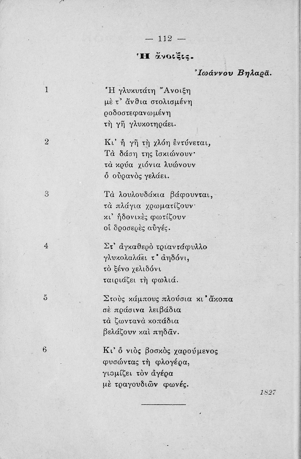 Σχολικό εγχειρίδιο για την Β΄ Γυμνασίου και την Γ΄ Αστικού Θηλέων για το μάθημα των Νέων Ελληνικών. Το εγχειρίδιο αποτελείται από κείμενα πεζού λόγου, επικολυρικά ποιήματα, ωδές, ηθογραφικά διηγήματα, ρητορικά