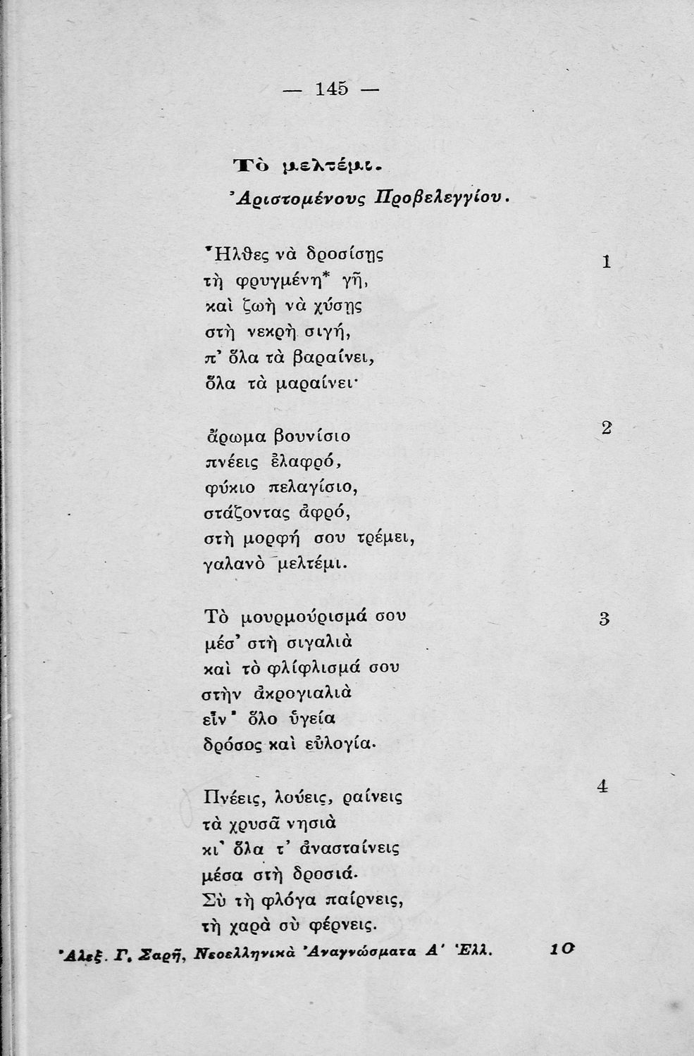 Σχολικό εγχειρίδιο Νέων Ελληνικών που περιλαμβάνει ποιήματα και πεζά Ελλήνων συγγραφέων εμπνευσμένα από την ελληνική μυθολογία, την σύγχρονη ελληνική ιστορία και την καθημερινή ζωή. Περιέχει και παράρτημα με βιογραφίες των συγγραφέων και λεξιλόγιο.