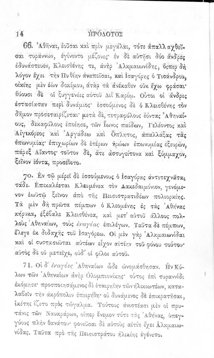 Σχολικό εγχειρίδιο Αρχαίων Ελληνικών για τα Ιερατικά Σχολεία. Ο τόμος περιέχει : «Ισοκράτους, το εις Ευαγόρα εγκώμιον, και τον Πανηγυρικόν- Πλουτάρχου, εκ των Παραλλήλων βίων τινάς- Ηροδότου, εκ των Ιστοριών ...