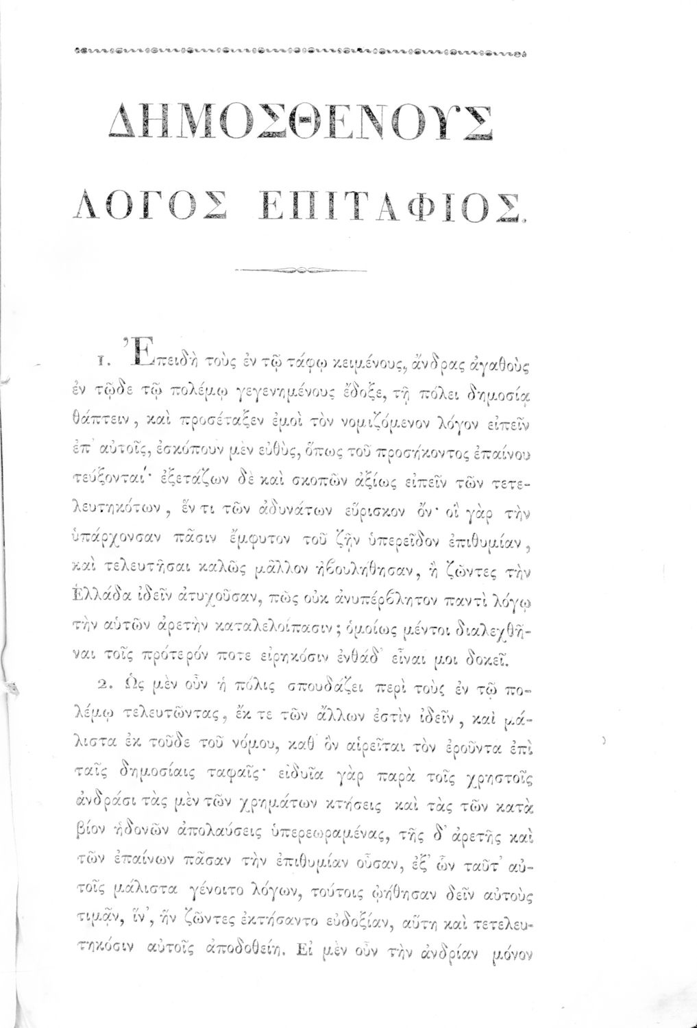 Τίτλος: Οι σωζόμενοι επιτάφιοι λόγοι των παλαιών Ελλήνων, μετατυπωθέντες προς χρήσιν των μαθητών του Κεντρικού Σχολείου