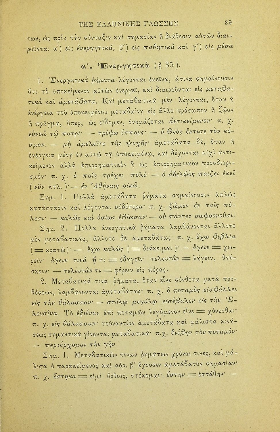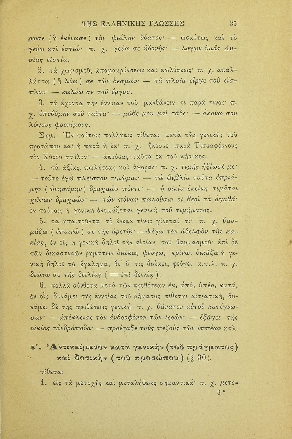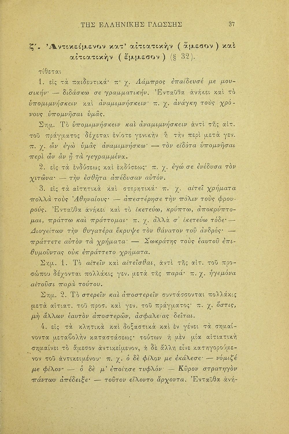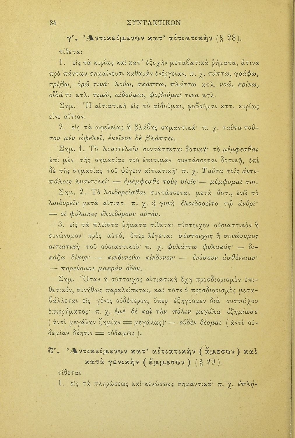 Βαθμίδα εκπαίδευσης: Δευτεροβάθμια Τάξη: Γυμνάσιο Μάθημα: Αρχαία Ελληνικά Γλώσσα: Καθαρεύουσα Παρουσίαση περιεχομένου: Σχολικό εγχειρίδιο Αρχαίων Ελληνικών Γυμνασίου που εξετάζει τα μέρη του λόγου και την σύνταξή τους. |