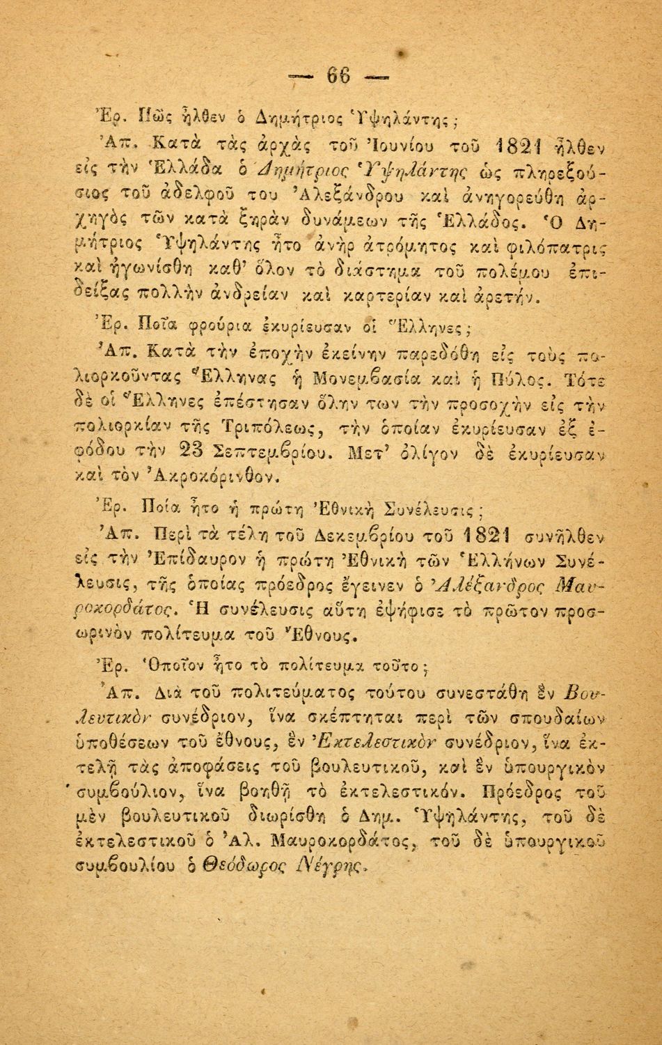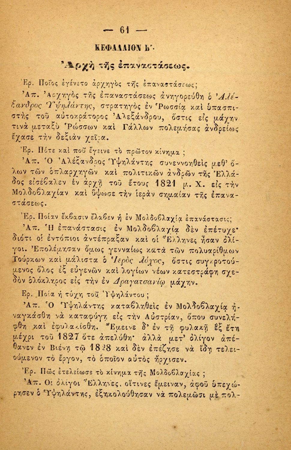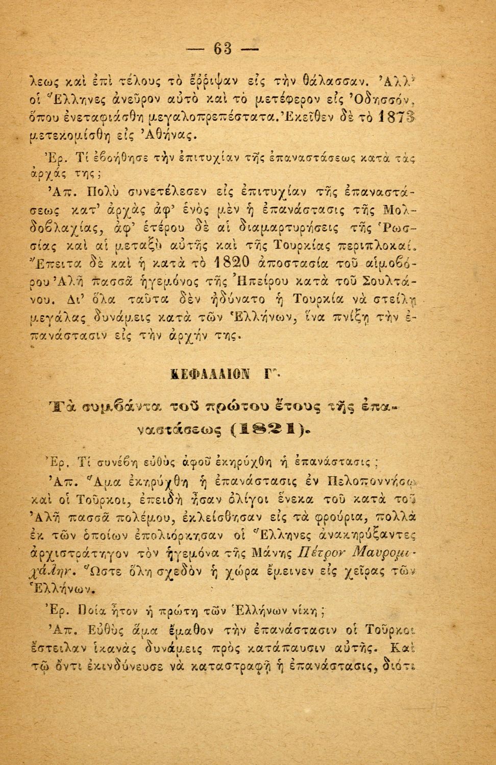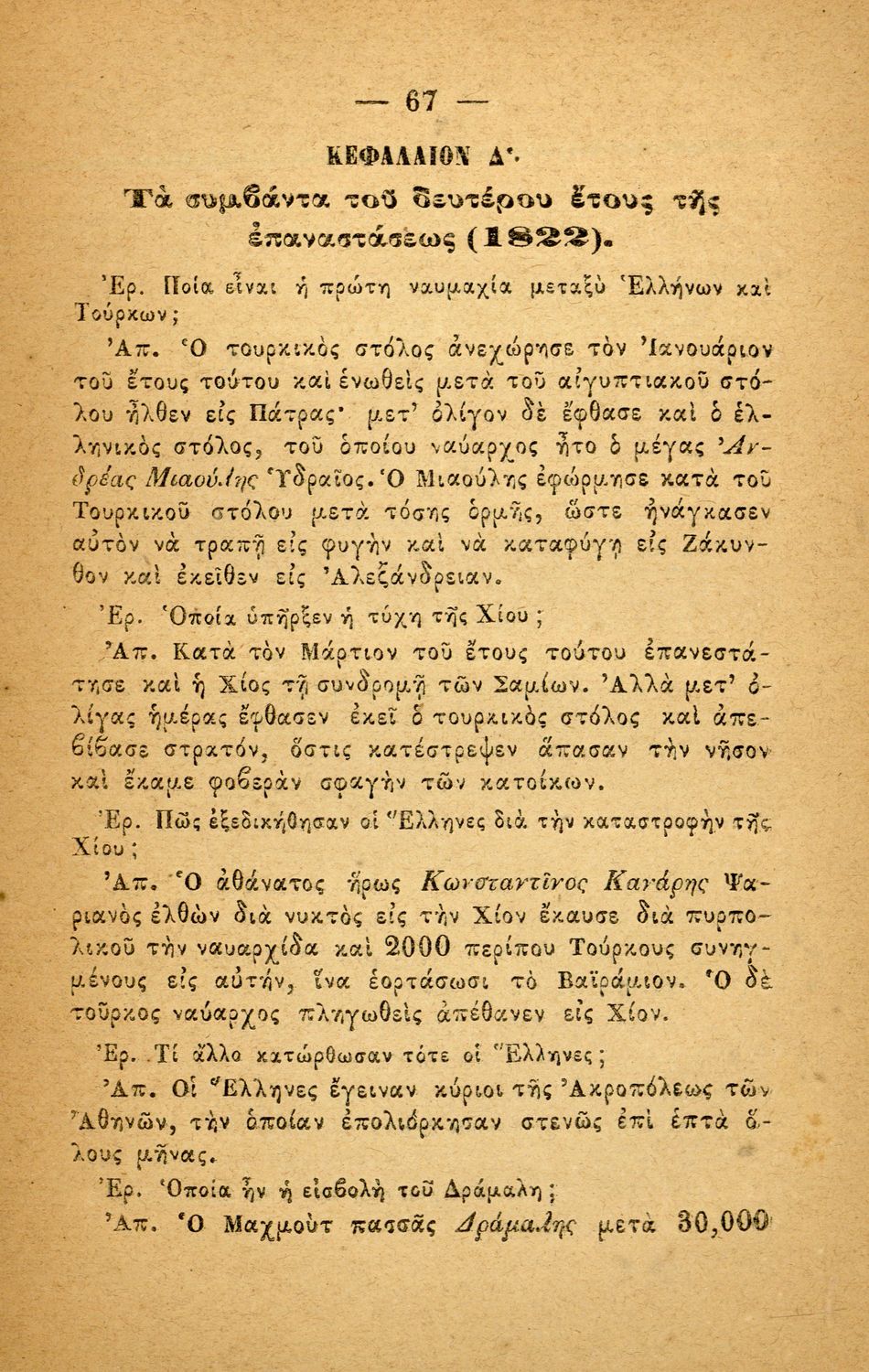 Βαθμίδα εκπαίδευσης: Πρωτοβάθμια Μάθημα: Ιστορία Γλώσσα: Καθαρεύουσα Παρουσίαση περιεχομένου: Σχολικό εγχειρίδιο Ιστορίας Δημοτικού που καλύπτει την περίοδο από τους μυθικούς και ηρωικούς χρόνους. έως την Ελληνική Επανάσταση και τη βασιλεία του Γεώργιου του Α΄ . |