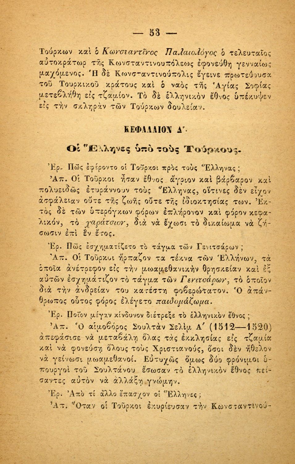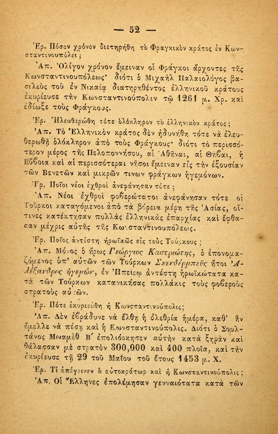 LDR 01200 2200181 4500 035 ## _a20-00157 040 ## _aΚΕΝΕΚ - Εταιρεία Σπουδών Νεοελληνικού Πολιτισμού και Παιδείας 041 ## _ael 100 ## _aΔ. Η. Κυριακόπουλος 110 ## _a157 245 0# _aΕπίτομος ελληνική ιστορία από των αρχαιοτάτων χρόνων μέχρι του νυν προς διδασκαλίαν εν τοις Δημοτικοίς Σχολείοις 260 ## _aΑθήνα _bΤυπογραφείο Ο Παλαμήδης _c1879 300 ## _a82 _c17 520 ## _aΣχολικό εγχειρίδιο Ιστορίας Δημοτικού που καλύπτει την περίοδο από τους μυθικούς και ηρωικούς χρόνους. έως την Ελληνική Επανάσταση και τη βασιλεία του Γεώργιου του Α΄ . 522 ## _aΕλλάδα 546 ## _aΚαθαρεύουσα 563 ## _aΜαλακό Εξώφυλλο 650 #4 _aΒυζάντιο _aΚαποδίστριας _aΠελοποννησιακός πόλεμος _aΡώμη _aΦεραίος _aΧριστιανισμός