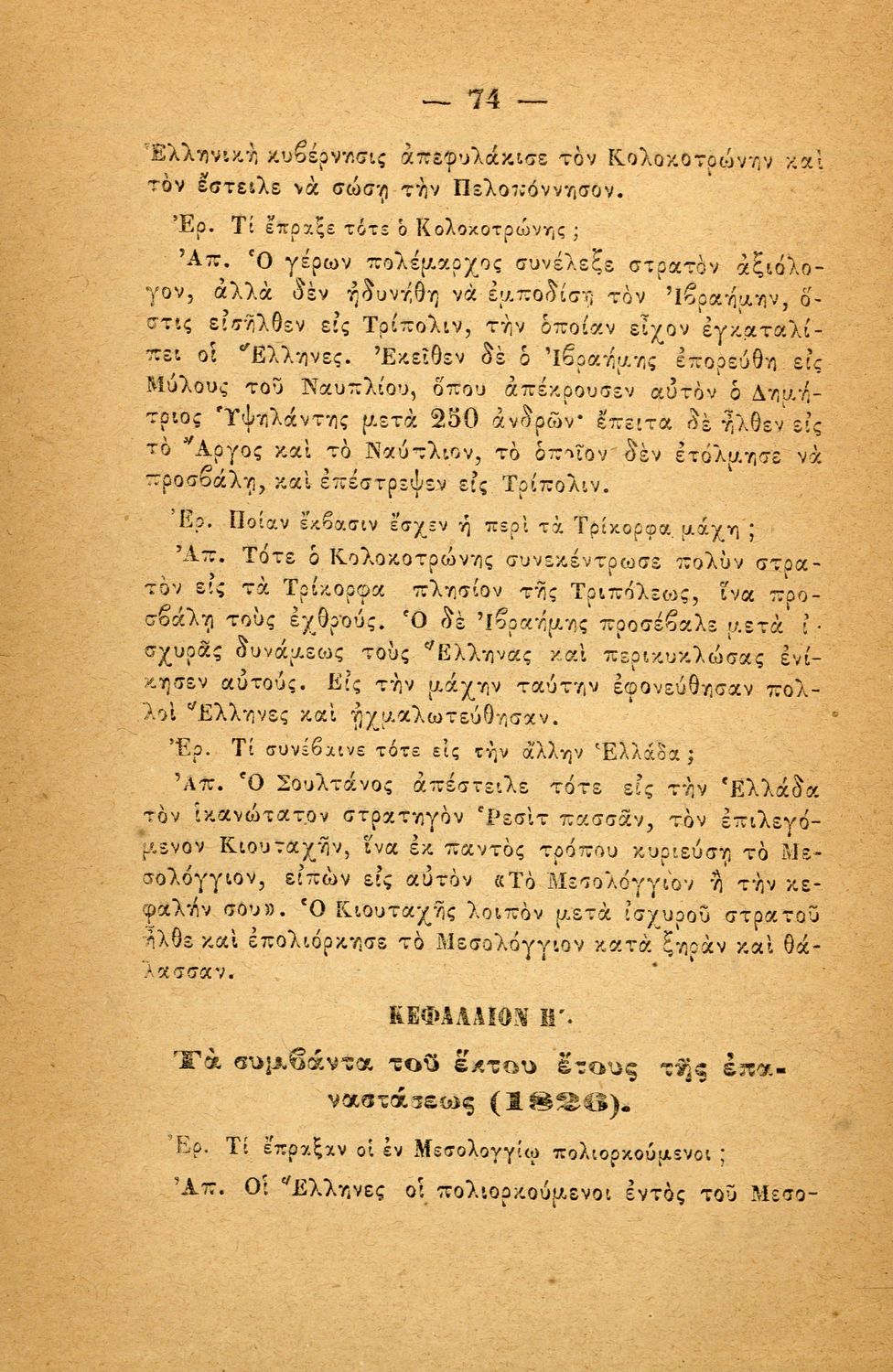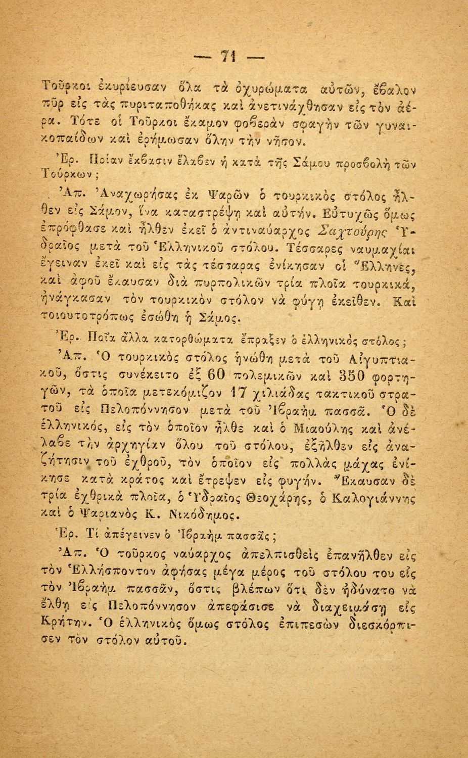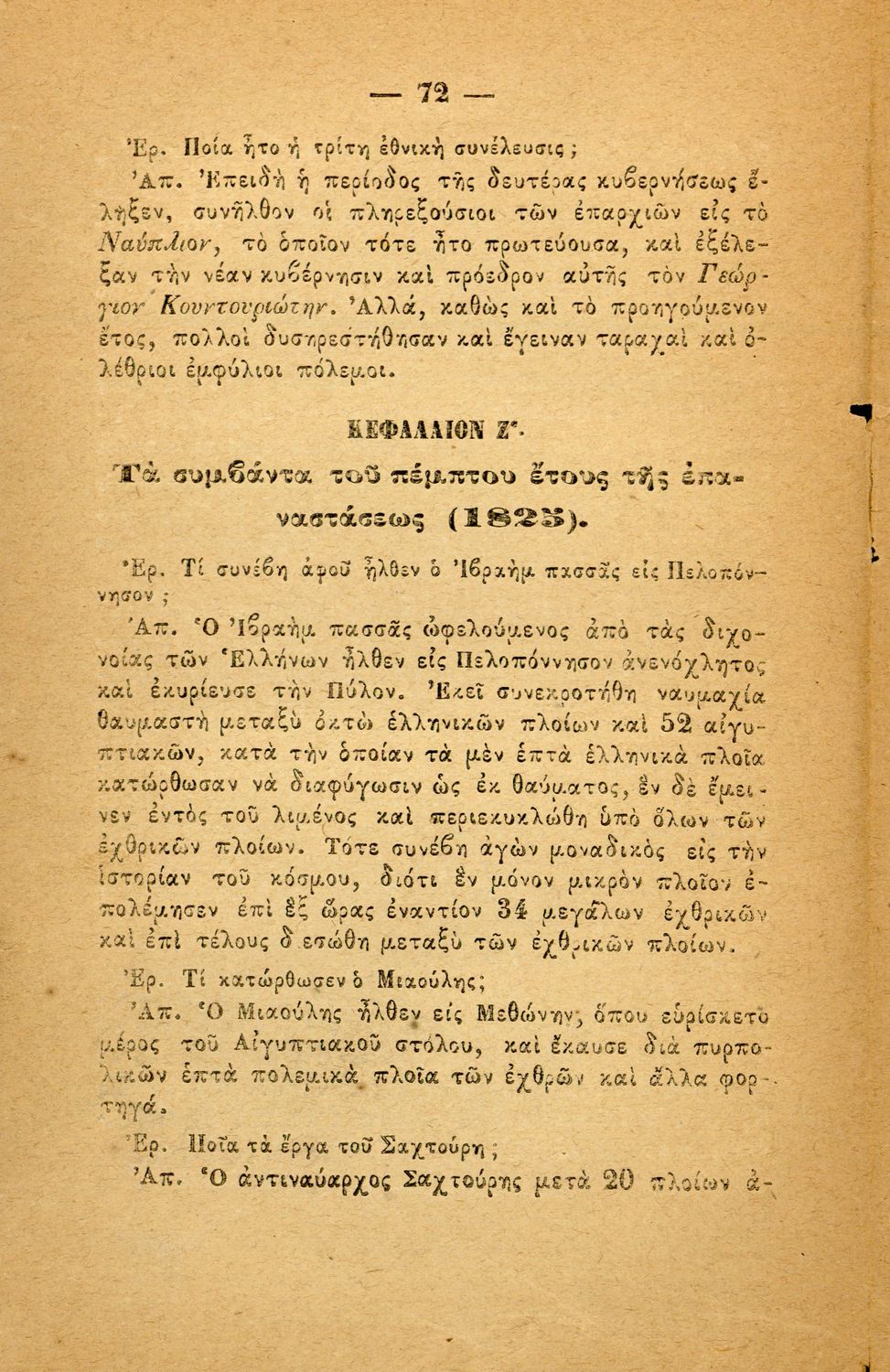 Βαθμίδα εκπαίδευσης: Πρωτοβάθμια Μάθημα: Ιστορία Γλώσσα: Καθαρεύουσα Παρουσίαση περιεχομένου: Σχολικό εγχειρίδιο Ιστορίας Δημοτικού που καλύπτει την περίοδο από τους μυθικούς και ηρωικούς χρόνους. έως την Ελληνική Επανάσταση και τη βασιλεία του Γεώργιου του Α΄ . |