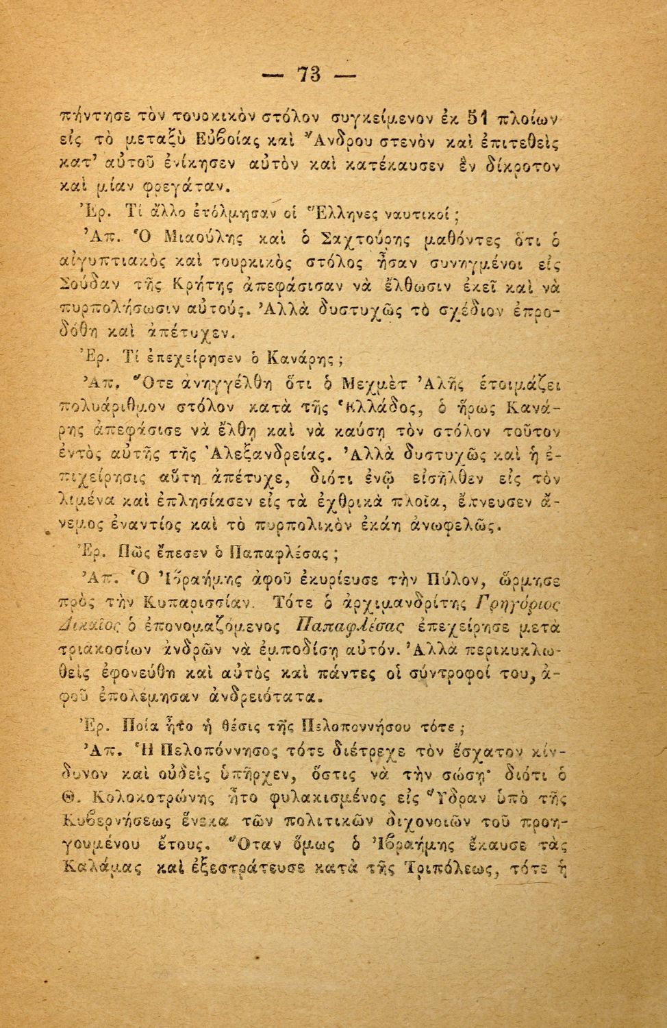 Κωδικός αναγνώρισης: 20-00157 Τίτλος: Επίτομος ελληνική ιστορία από των αρχαιοτάτων χρόνων μέχρι του νυν προς διδασκαλίαν εν τοις Δημοτικοίς Σχολείοις Συγγραφέας: Δ. Η. Κυριακόπουλος Μέγεθος και υπόστρωμα: Σχολικό εγχειρίδιο, 17εκ., μαλακό εξώφυλλο, 82 σελίδες. |