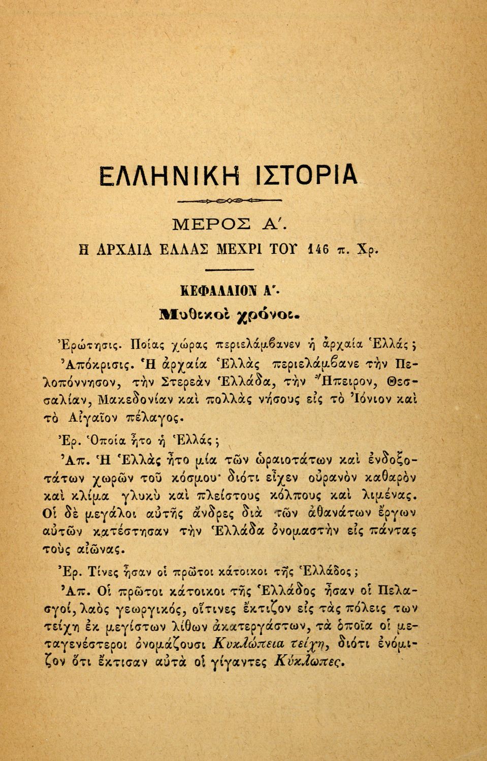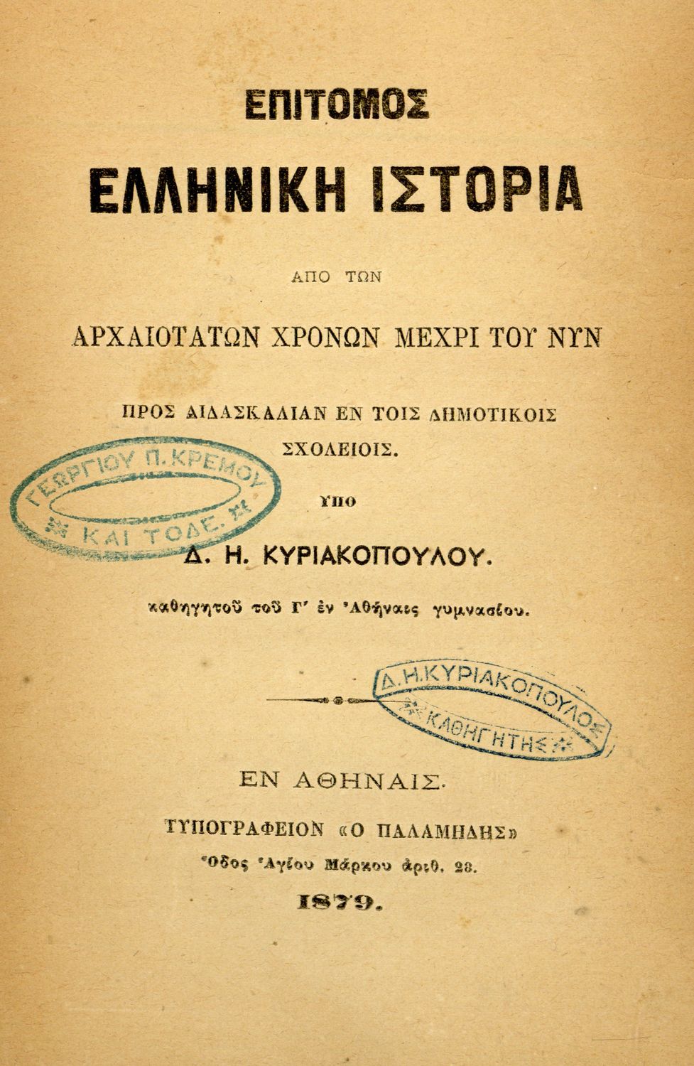 Επίτομος ελληνική ιστορία από των αρχαιοτάτων χρόνων μέχρι του νυν προς διδασκαλίαν εν τοις Δημοτικοίς Σχολείοις