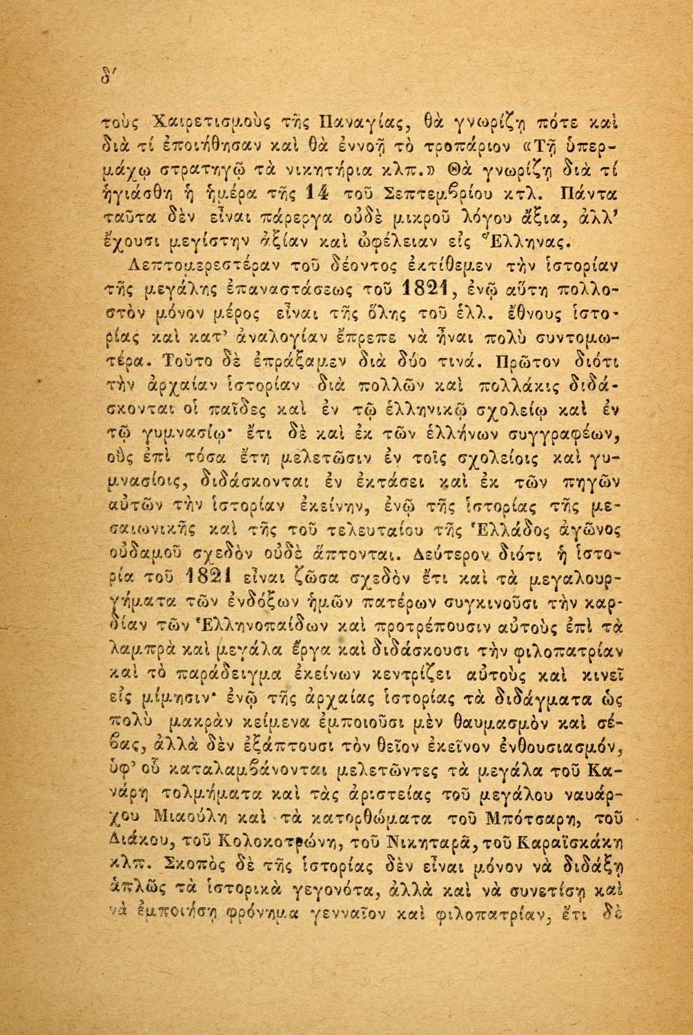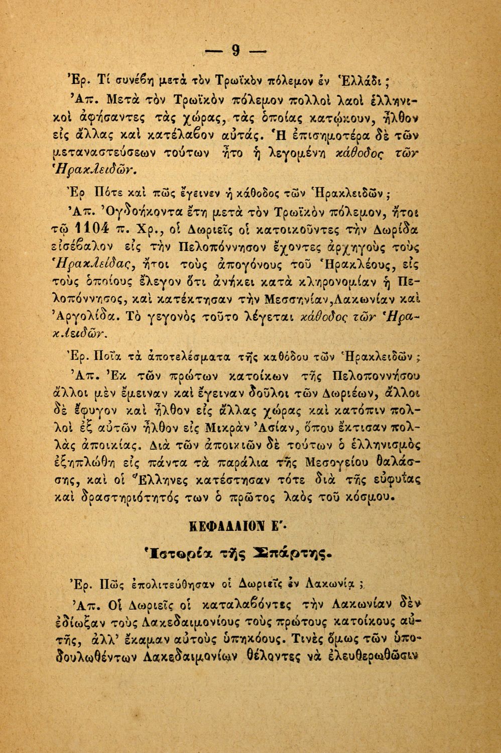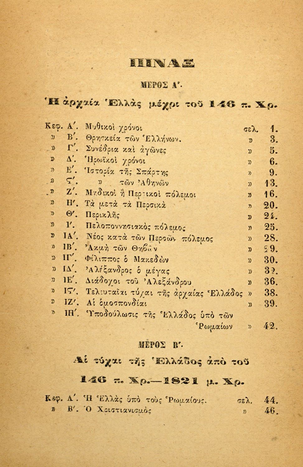 Σχολικό εγχειρίδιο Ιστορίας για τα Ελληνικά Σχολεία και Παρθεναγωγεία που καλύπτει την περίοδο από τους προϊστορικούς χρόνους μέχρι την Ελληνική Επανάσταση και τη βασιλεία του Όθωνα.