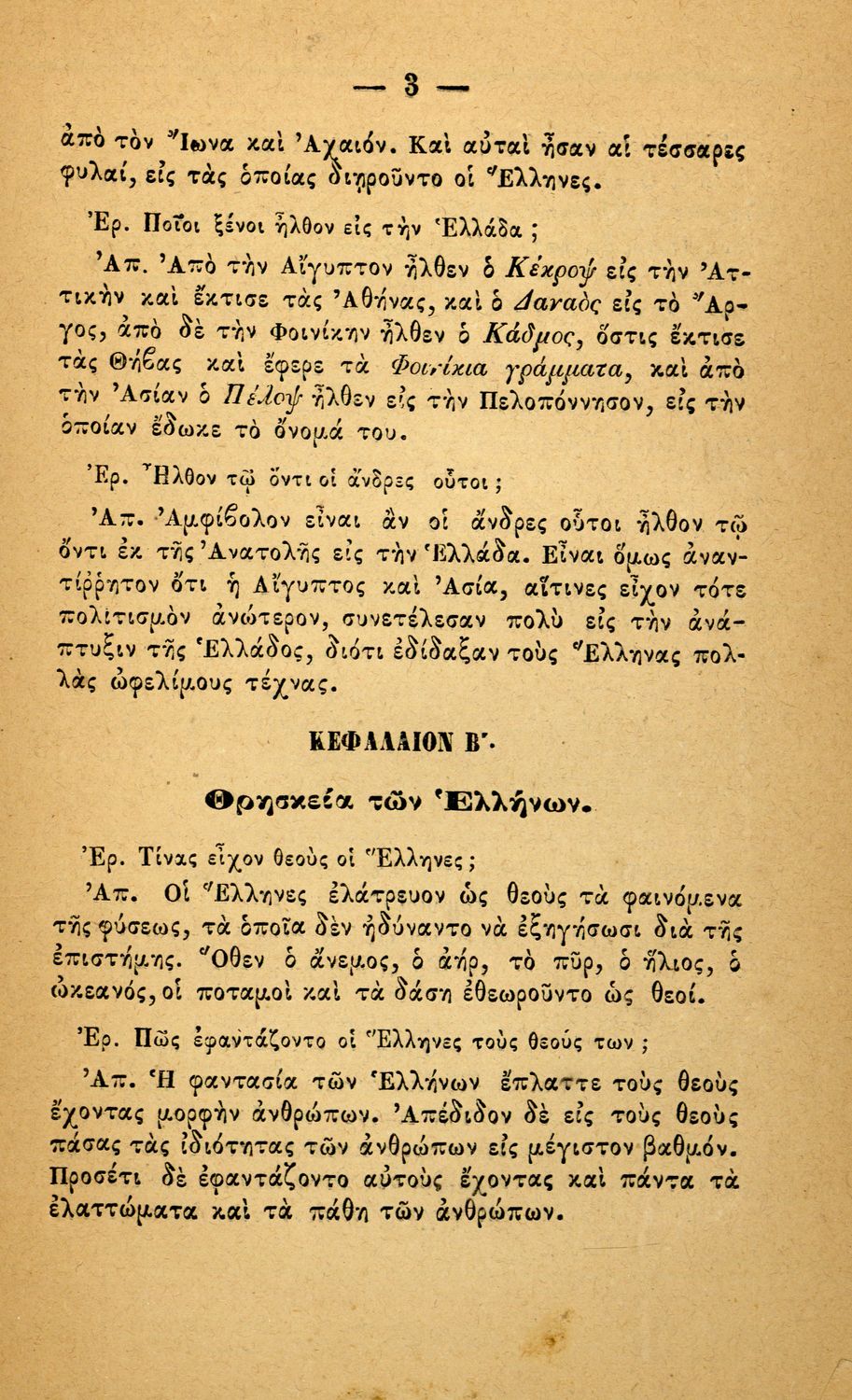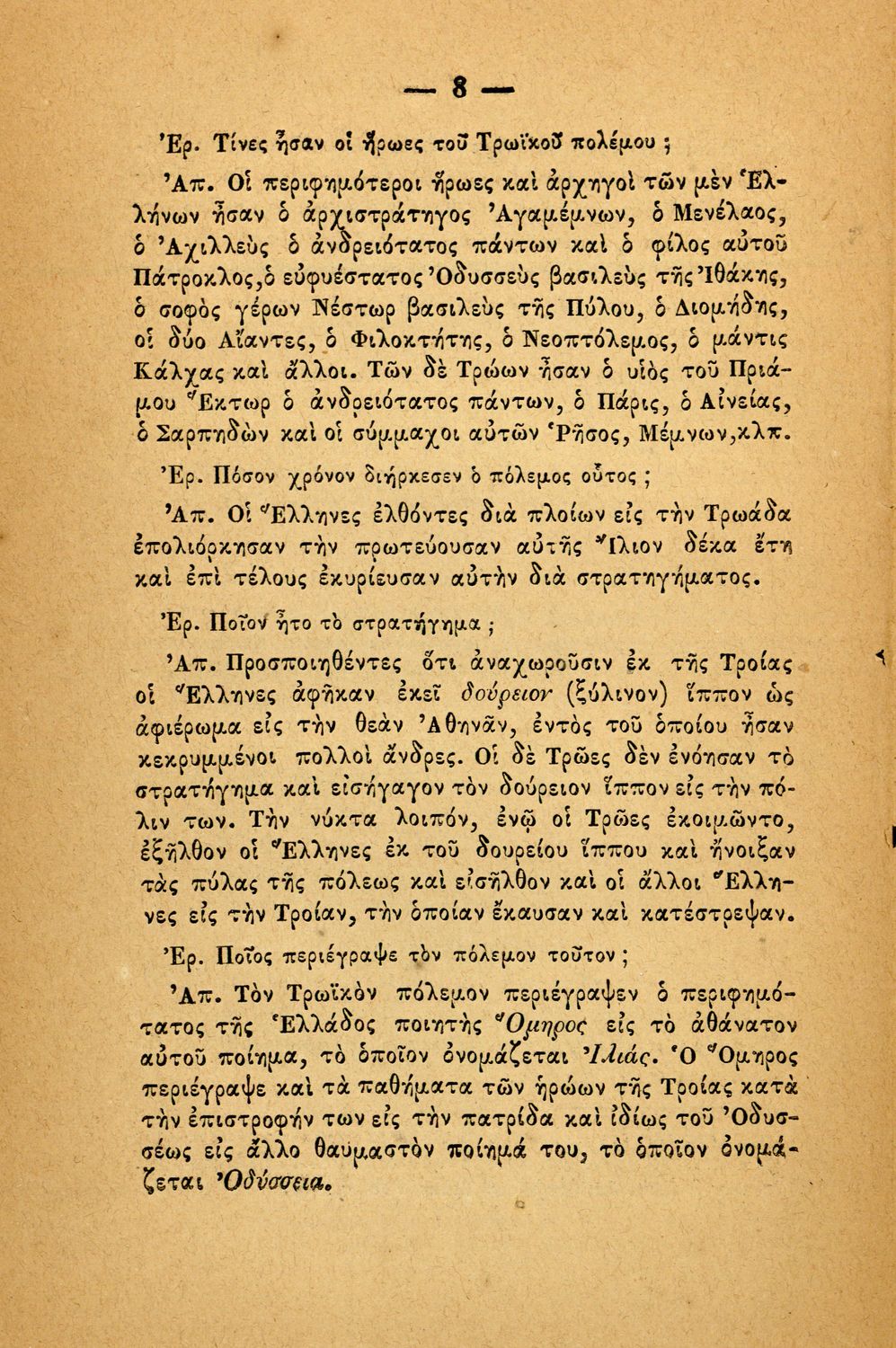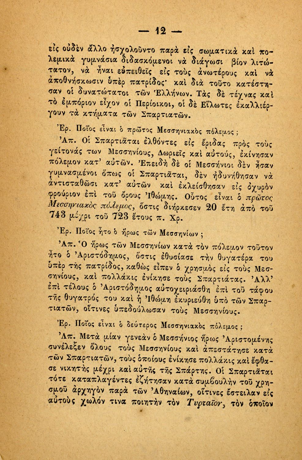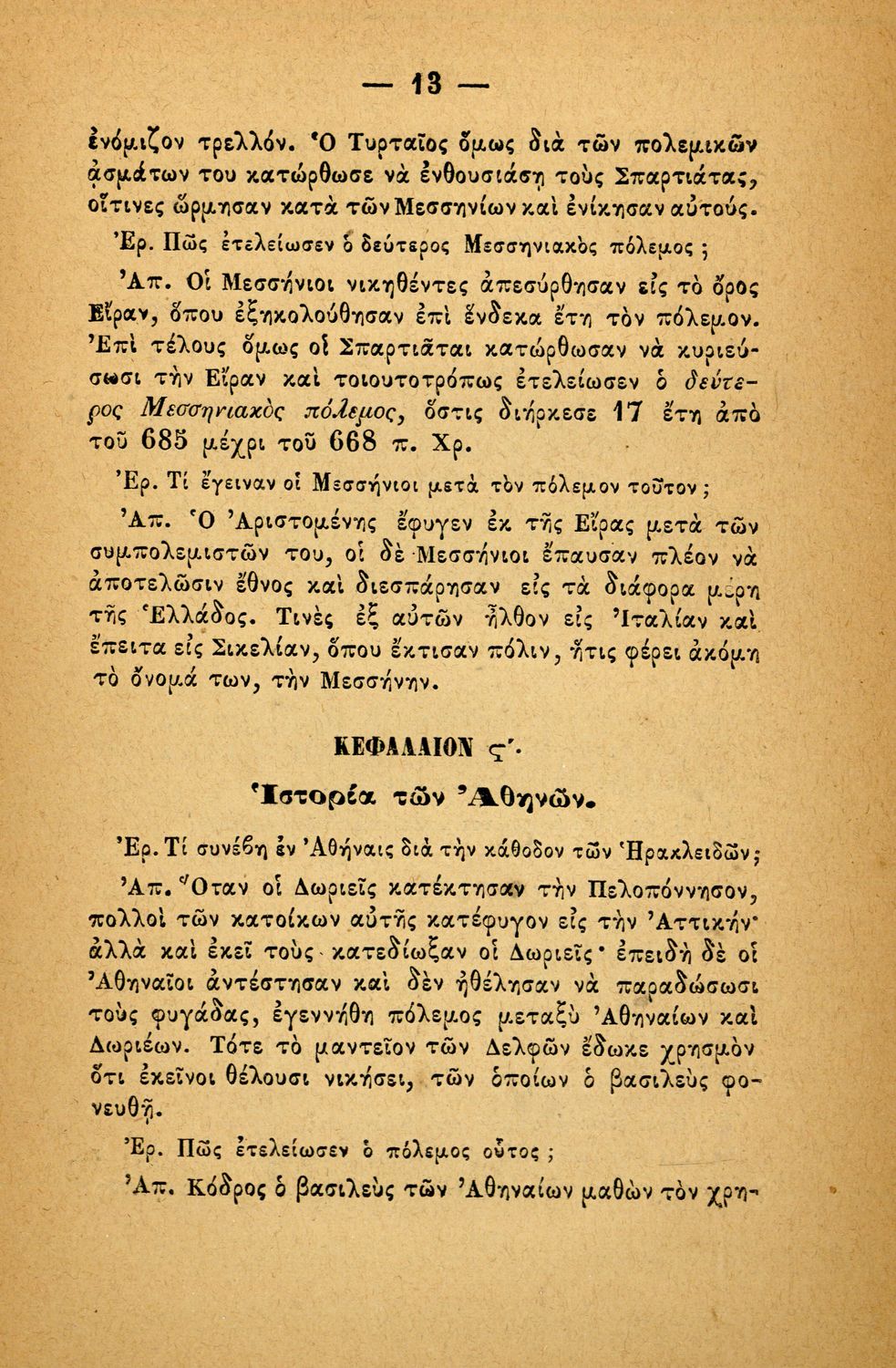 Σχολικό εγχειρίδιο Ιστορίας για τα Ελληνικά Σχολεία και Παρθεναγωγεία που καλύπτει την περίοδο από τους προϊστορικούς χρόνους μέχρι την Ελληνική Επανάσταση και τη βασιλεία του Όθωνα.
