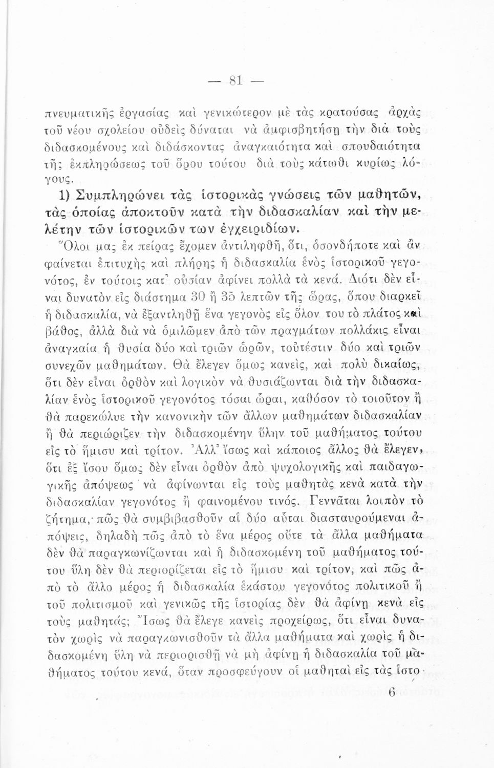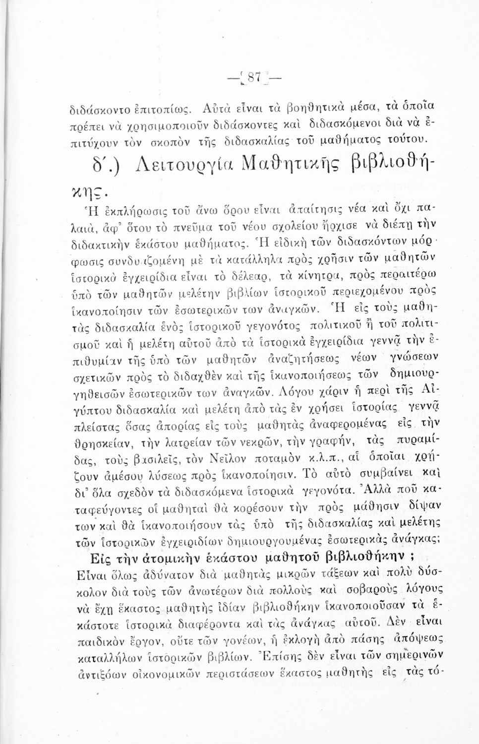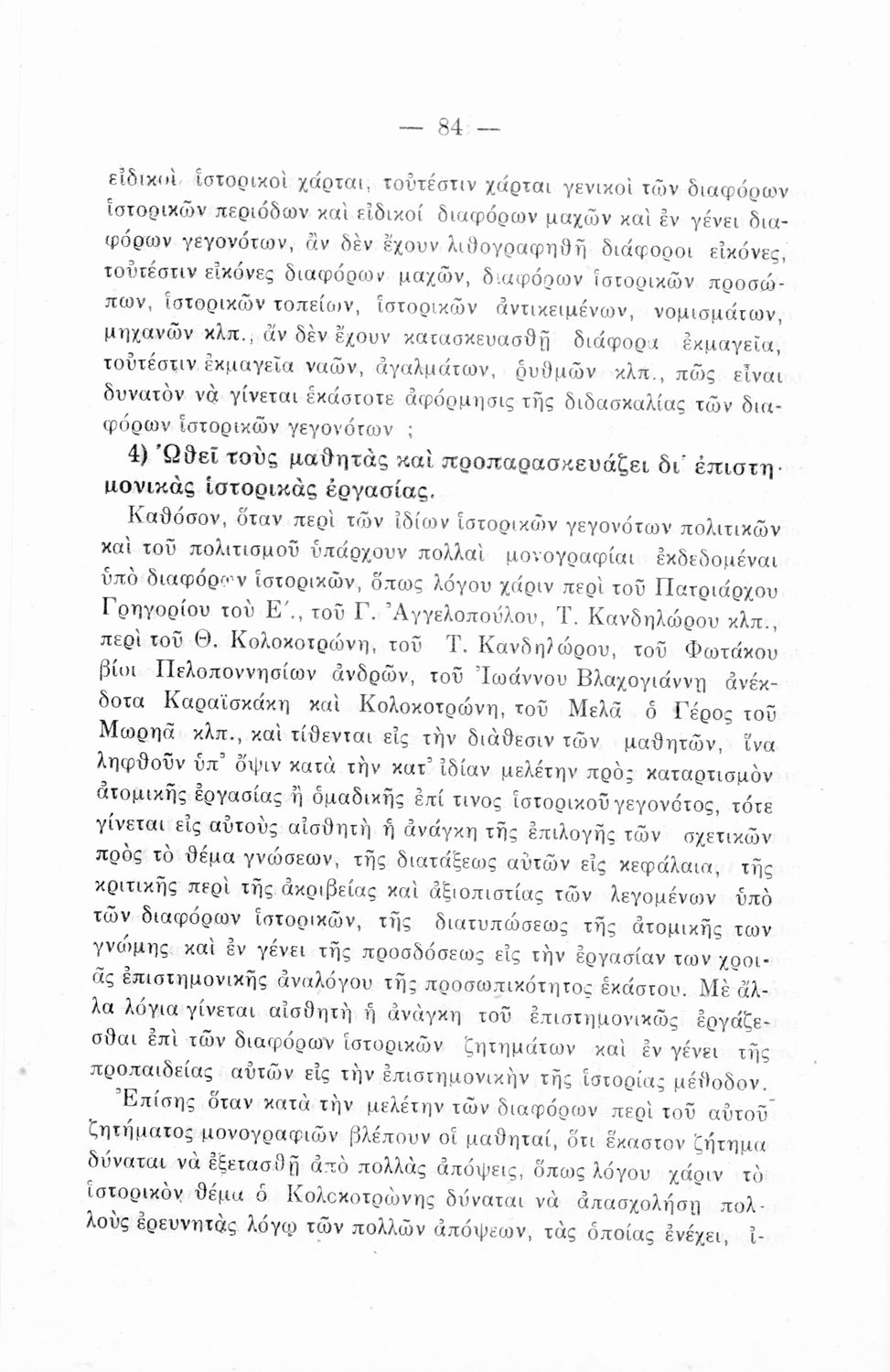 Βαθμίδα εκπαίδευσης: Πρωτοβάθμια, Δευτεροβάθμια Μάθημα: Ιστορία Γλώσσα: Καθαρεύουσα Παρουσίαση περιεχομένου: Παιδαγωγικό βοήθημα Ιστορίας που πραγματεύεται την σημασιολογική εξέλιξη και ερμηνεία του όρου ιστορία, την εξέλιξη της ιστορικής επιστήμης, τις προβληματικές που απασχόλησαν τα τελευταία χρόνια τους ιστορικούς και την εξέλιξη της διδασκαλίας του μαθήματος. Περιέχει και υποδειγματικά σχέδια διδασκαλίας του μαθήματος. |