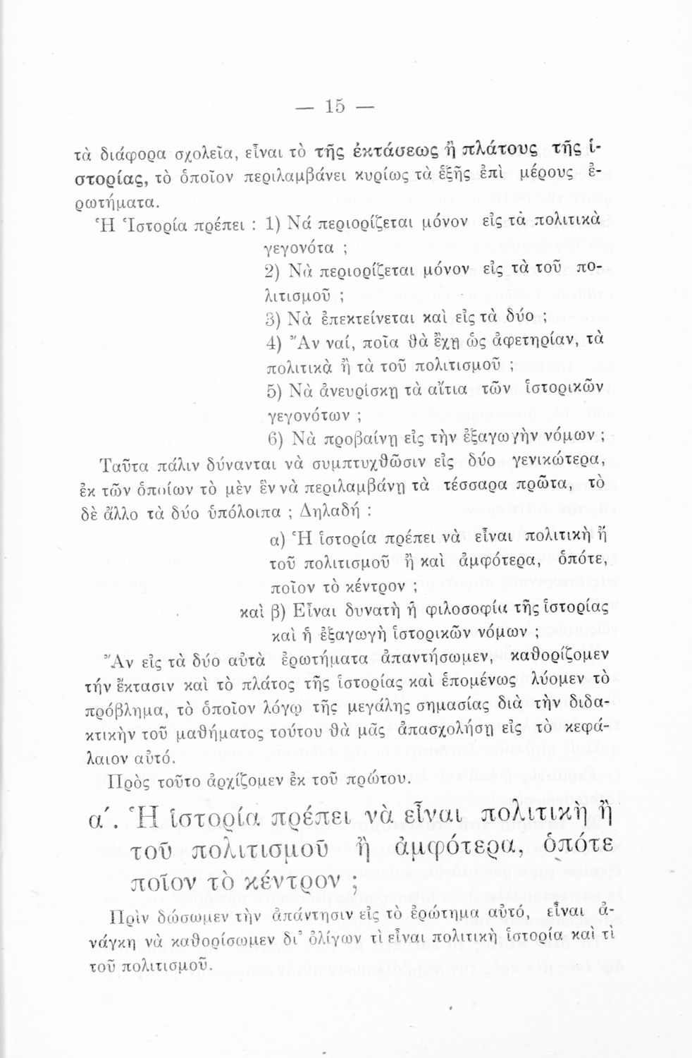 Βαθμίδα εκπαίδευσης: Πρωτοβάθμια, Δευτεροβάθμια Μάθημα: Ιστορία Γλώσσα: Καθαρεύουσα Παρουσίαση περιεχομένου: Παιδαγωγικό βοήθημα Ιστορίας που πραγματεύεται την σημασιολογική εξέλιξη και ερμηνεία του όρου ιστορία, την εξέλιξη της ιστορικής επιστήμης, τις προβληματικές που απασχόλησαν τα τελευταία χρόνια τους ιστορικούς και την εξέλιξη της διδασκαλίας του μαθήματος. Περιέχει και υποδειγματικά σχέδια διδασκαλίας του μαθήματος. |