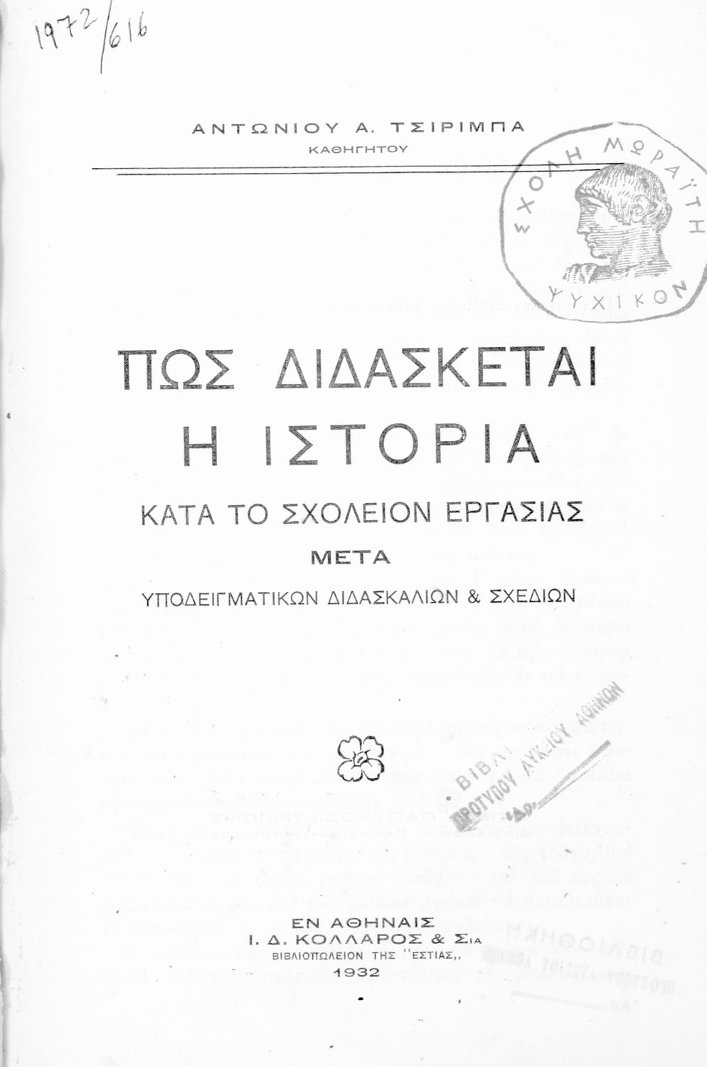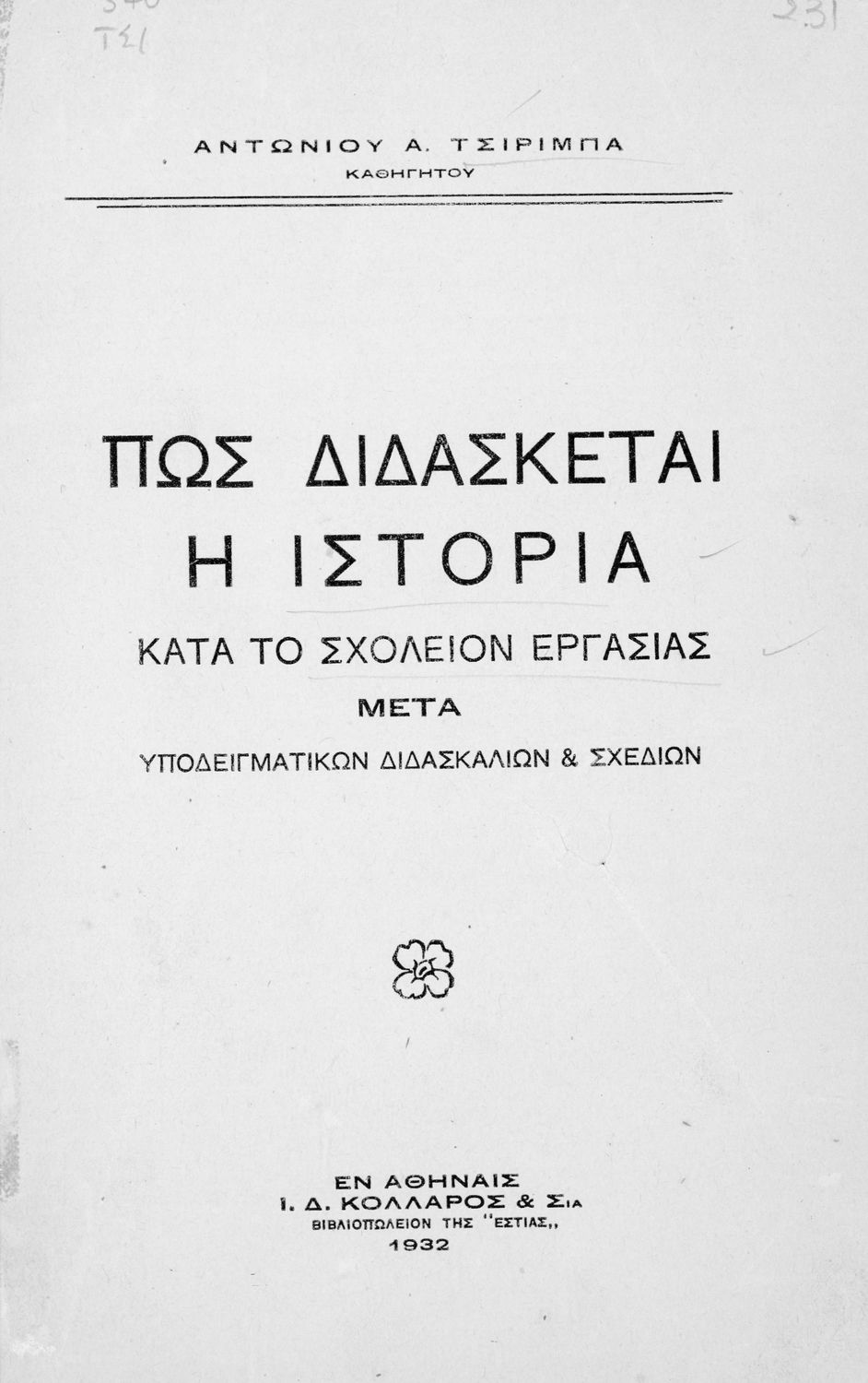 Κωδικός αναγνώρισης: 20-00231 Τίτλος: Πώς διδάσκεται η ιστορία κατά το σχολείον εργασίας μετά υποδειγματικών διδασκαλιών και σχεδίων Συγγραφέας: Αντώνιος Α. Τσιρίμπας Μέγεθος και υπόστρωμα: Παιδαγωγικό βοήθημα, 20εκ., σκληρό εξώφυλλο, 164 σελίδες. |