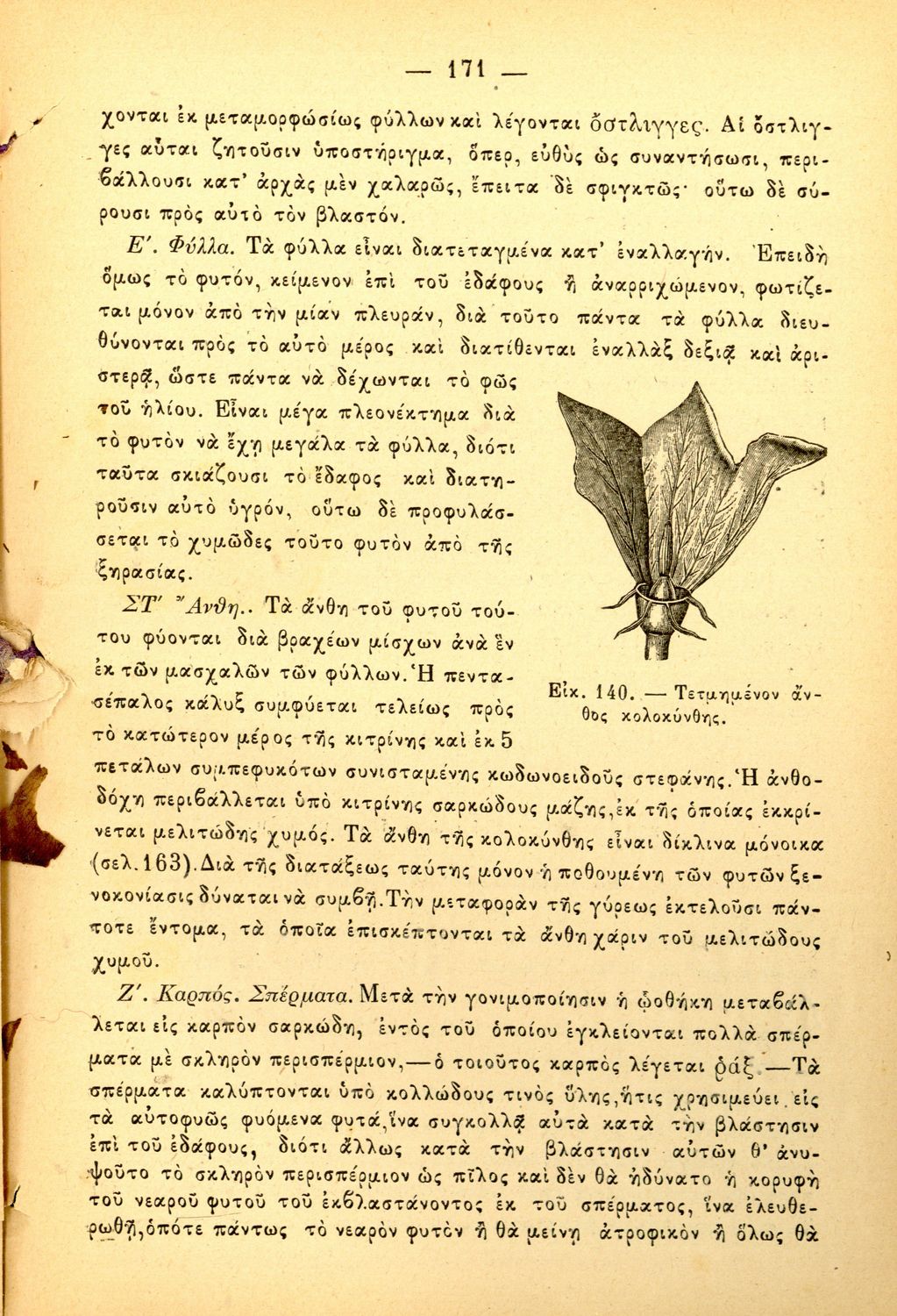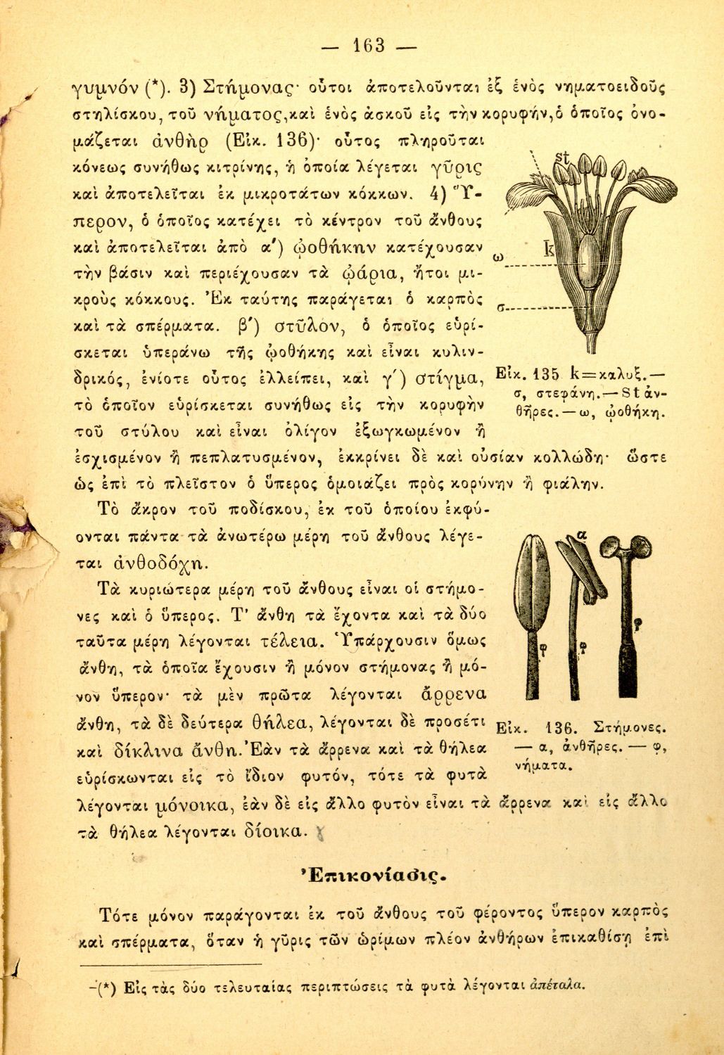 Σχολικό εγχειρίδιο Φυσικής Ιστορίας για τα Ελληνικά Σχολεία και Παρθεναγωγεία που περιλαμβάνει στοιχεία ζωολογίας και της φυτολογίας και διακρίνει τα ζώα και τα φυτά ανάλογα με την συνομοταξία στην οποία ανήκουν