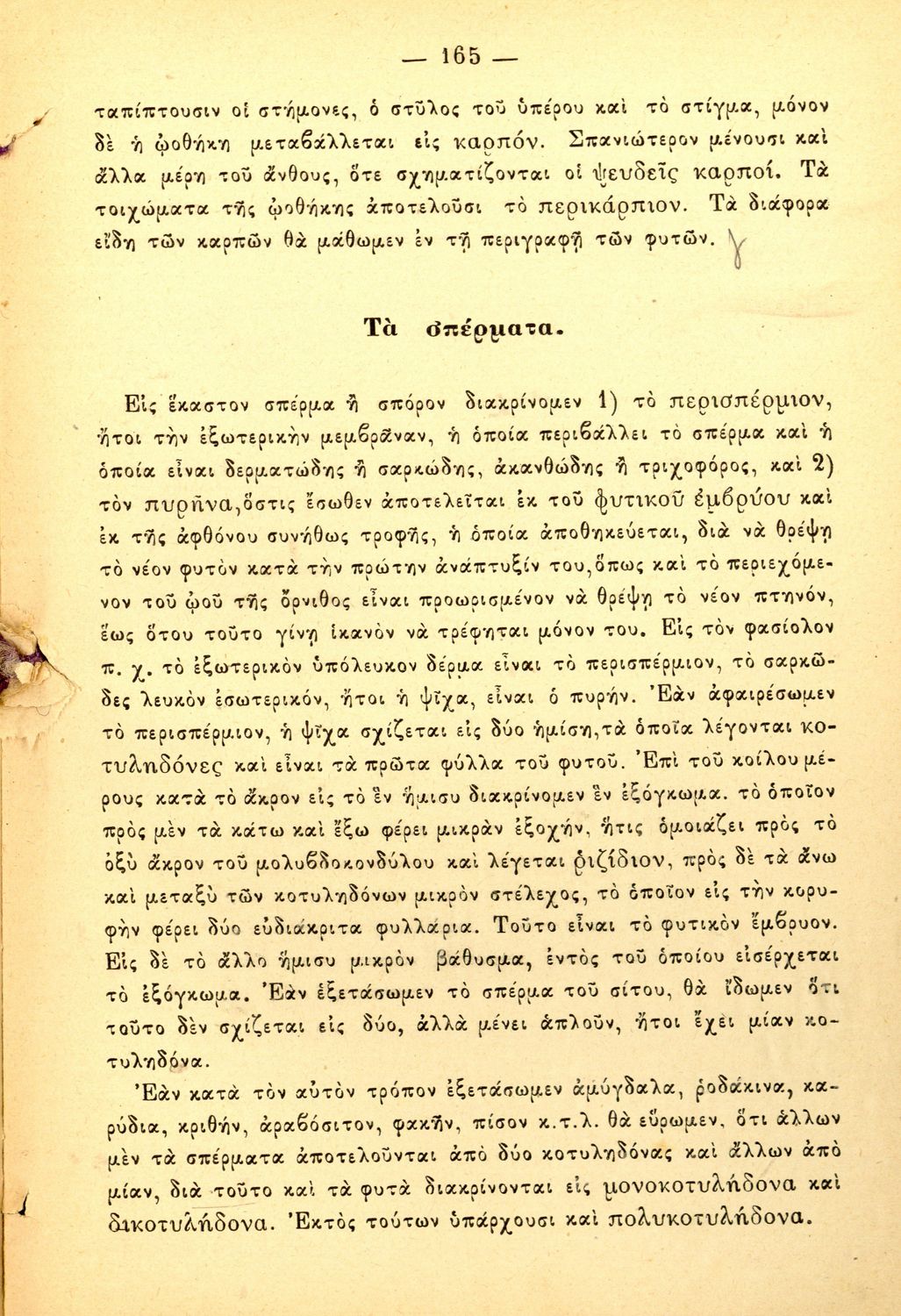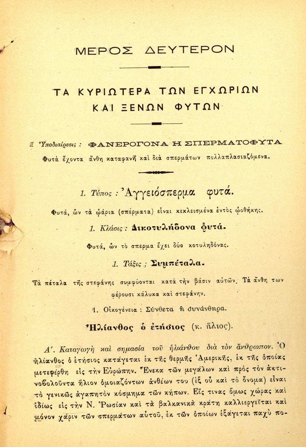 Σχολικό Εγχειρίδιο Φυσικής Ιστορίας για τις Α' και Β' Ελληνικών Σχολείων και Παρθεναγωγείων που περιλαμβάνει στοιχεία ζωολογίας και της φυτολογίας και διακρίνει τα ζώα και τα φυτά ανάλογα με την συνομοταξία ...