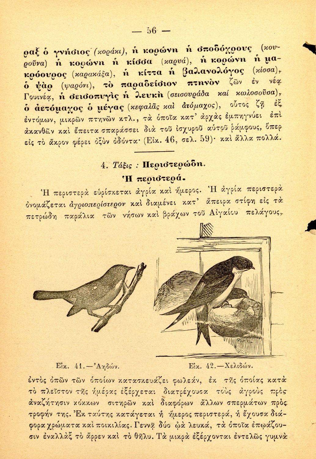 Σχολικό εγχειρίδιο της Α' Ελληνικού Σχολείου για το μάθημα της Φυσικής Ιστορίας. Το εγχειρίδιο περιλαμβάνει τα βασικά ζητήματα της επιστήμης της ζωολογίας (κατηγορίες και διαφορές μεταξύ ζώων, πτηνών και ...