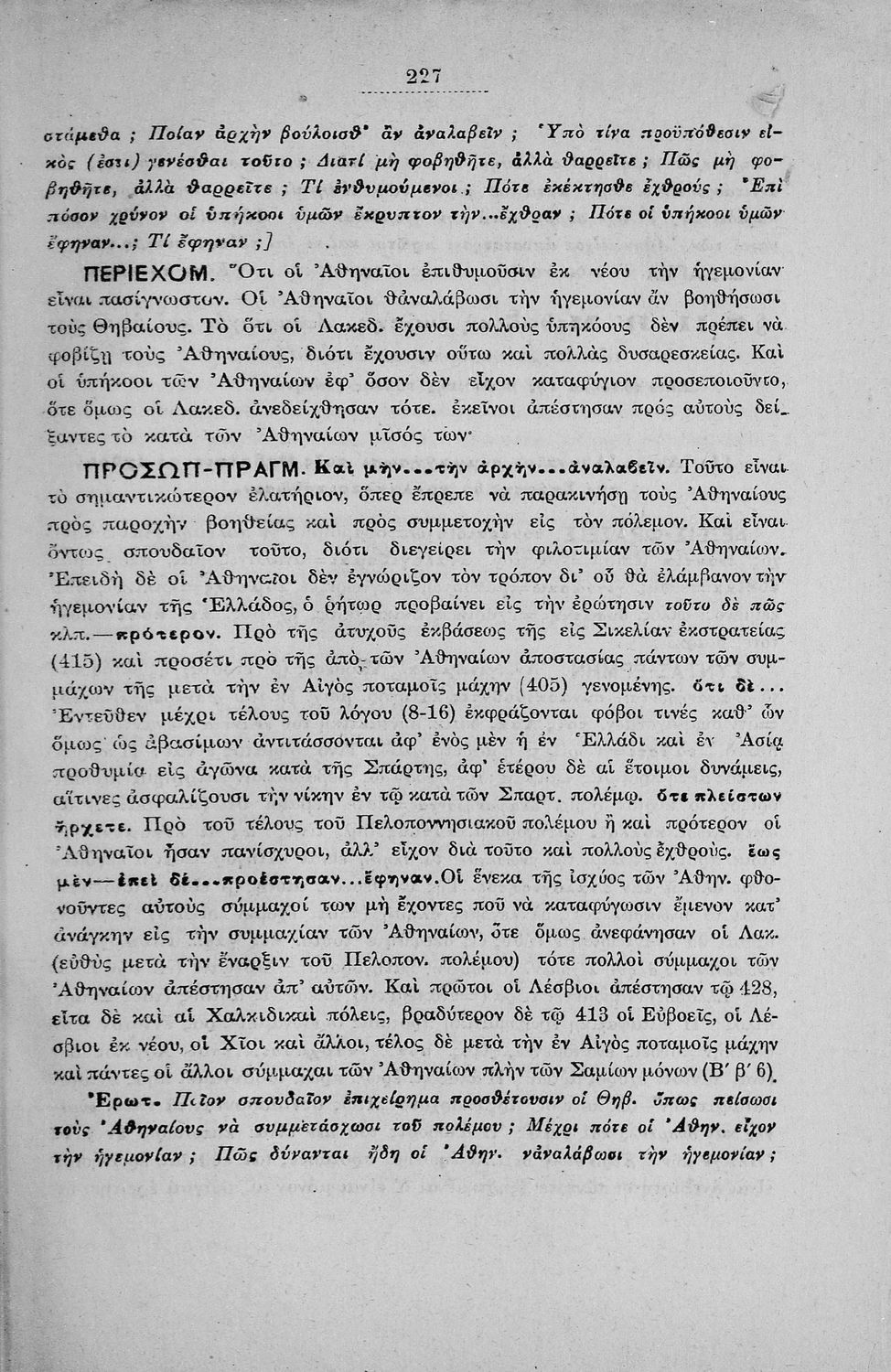Μαθητικό βοήθημα Αρχαίων Ελληνικών για την Γ΄ τάξη των τετρατάξιων Γυμνασίων το οποίο περιέχει τις Δημηγορίες του Θουκυδίδη σε μετάφραση.