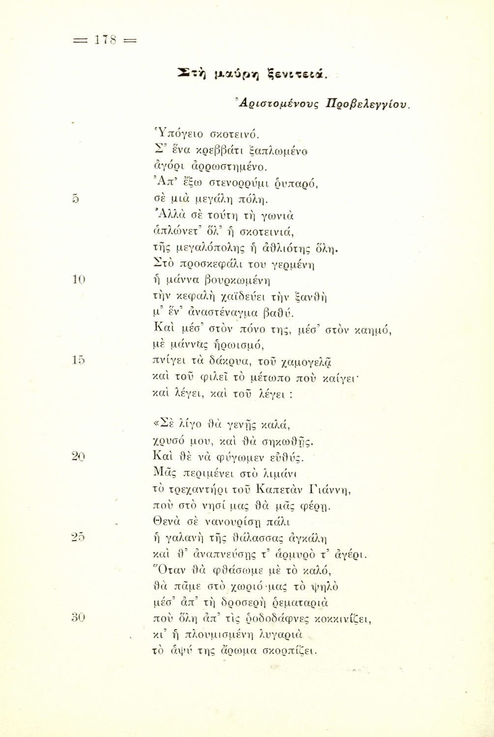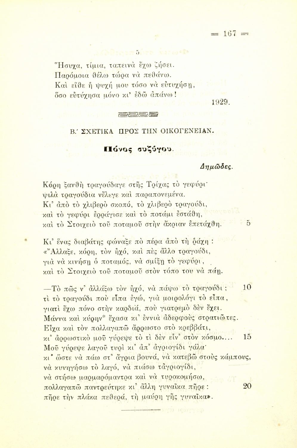 Σχολικό εγχειρίδιο για την Β΄ Γυμνασίου και την Γ΄ Αστικού Θηλέων για το μάθημα των Νέων Ελληνικών. Το εγχειρίδιο αποτελείται από κείμενα πεζού λόγου, επικολυρικά ποιήματα, ωδές, ηθογραφικά διηγήματα, ρητορικά