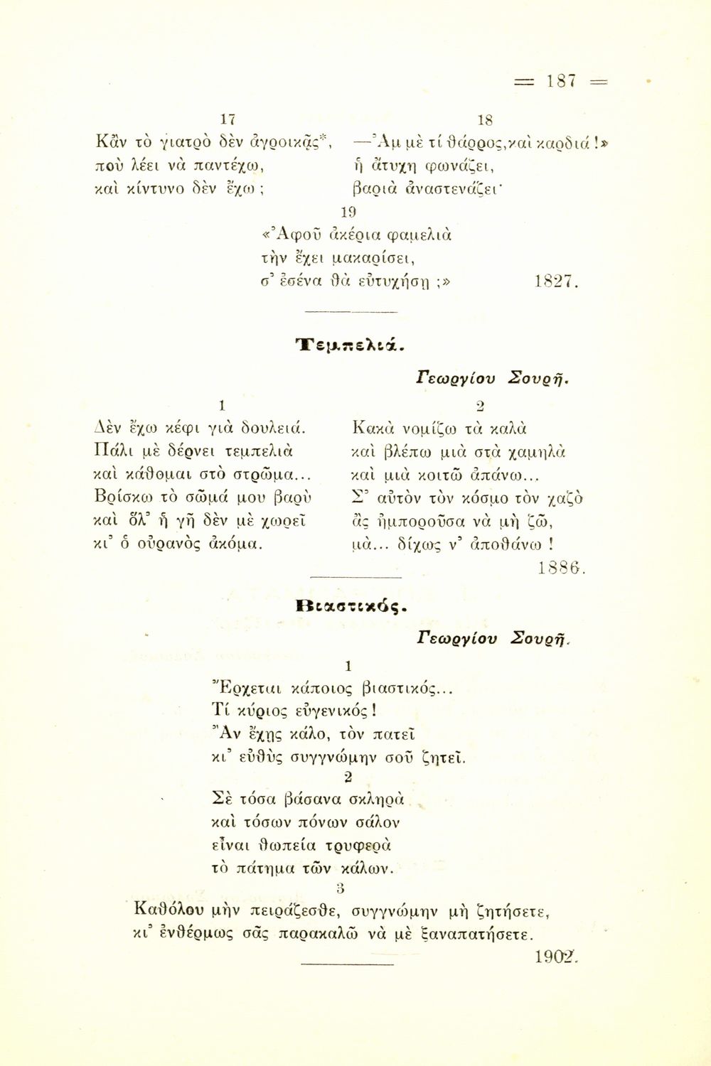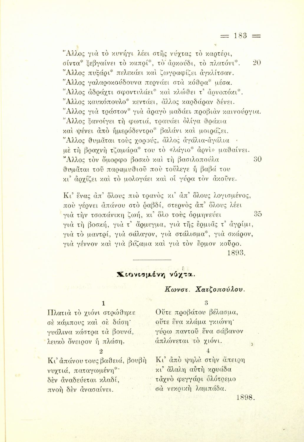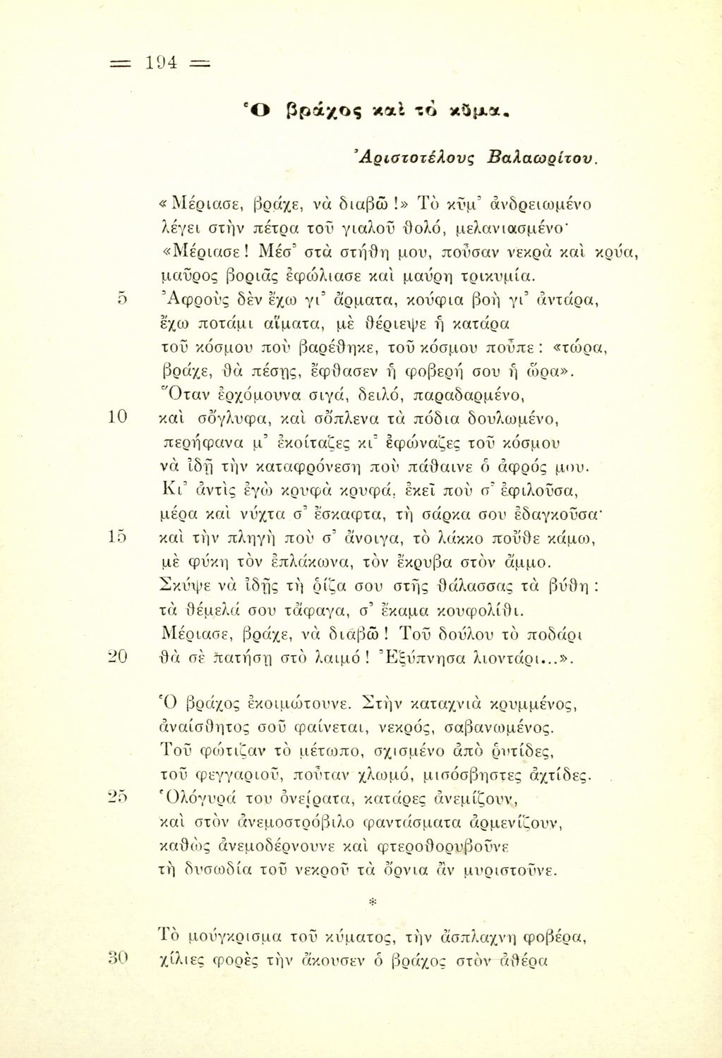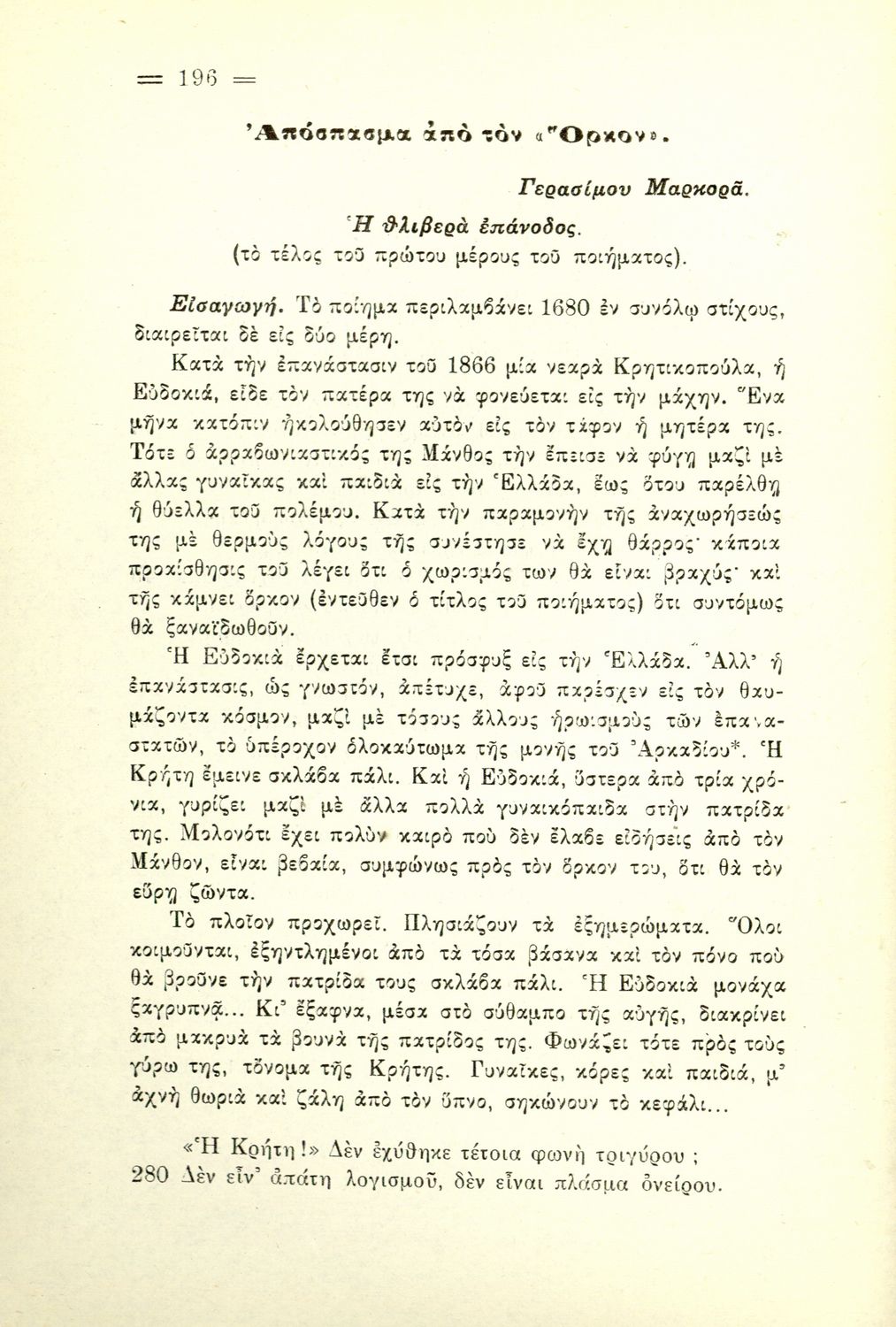 Σχολικό εγχειρίδιο για την Β΄ Γυμνασίου και την Γ΄ Αστικού Θηλέων για το μάθημα των Νέων Ελληνικών. Το εγχειρίδιο αποτελείται από κείμενα πεζού λόγου, επικολυρικά ποιήματα, ωδές, ηθογραφικά διηγήματα, ρητορικά