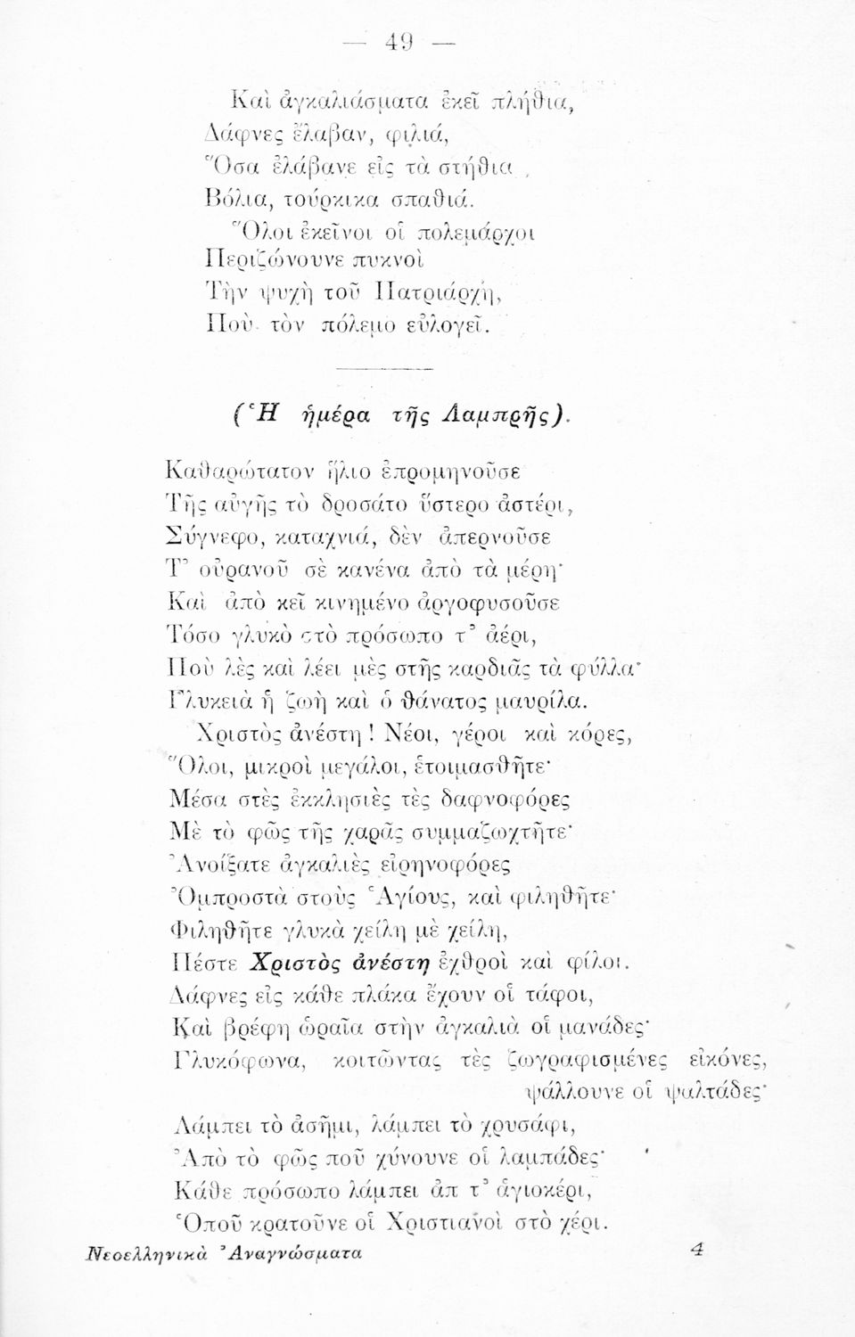 Σχολικό εγχειρίδιο Νέων Ελληνικών για την Α' Ελληνικού Σχολείου που περιλαμβάνει ποιήματα και πεζά εμπνευσμένα από την αρχαία, βυζαντινή και νεώτερη ιστορία της Ελλάδας, τη θρησκευτική παράδοση και τα τοπικά ...