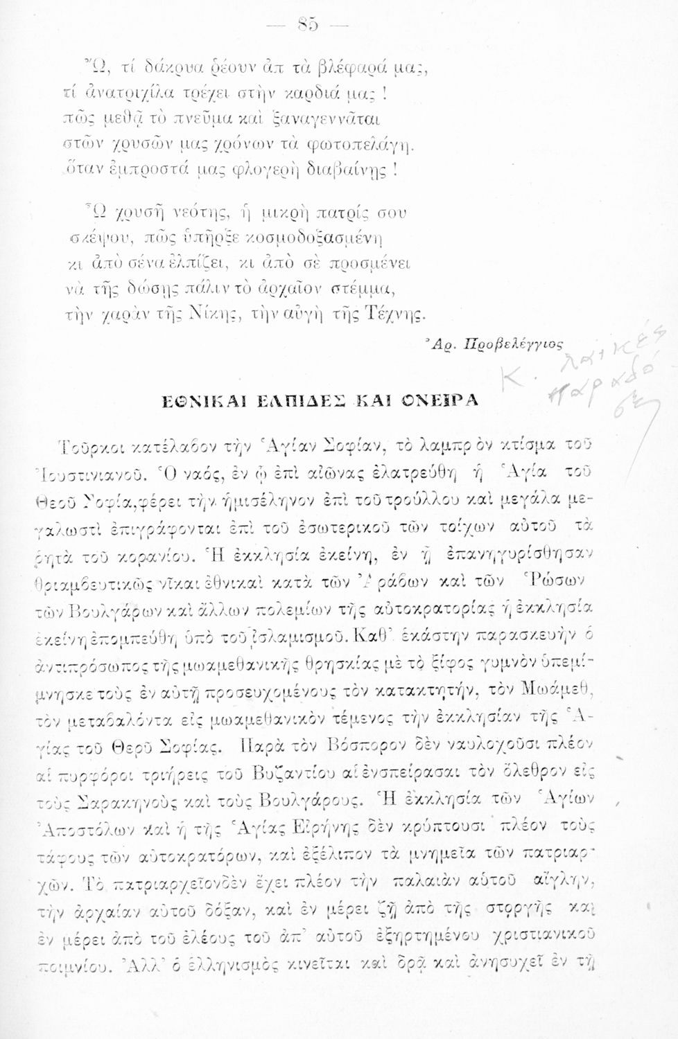 Παρουσίαση περιεχομένου: Σχολικό εγχειρίδιο Νέων Ελληνικών Β΄ Γυμνασίου που περιλαμβάνει διηγήματα και ποιήματα Ελλήνων συγγραφέων εμπνευσμένα από την Τουρκοκρατία, την Ελληνική Επανάσταση και τη θρησκεία.