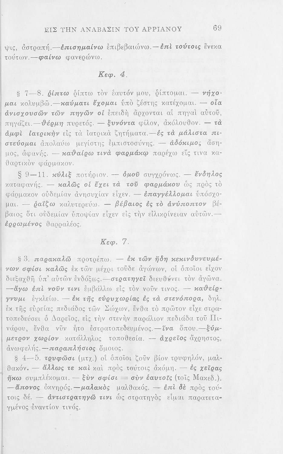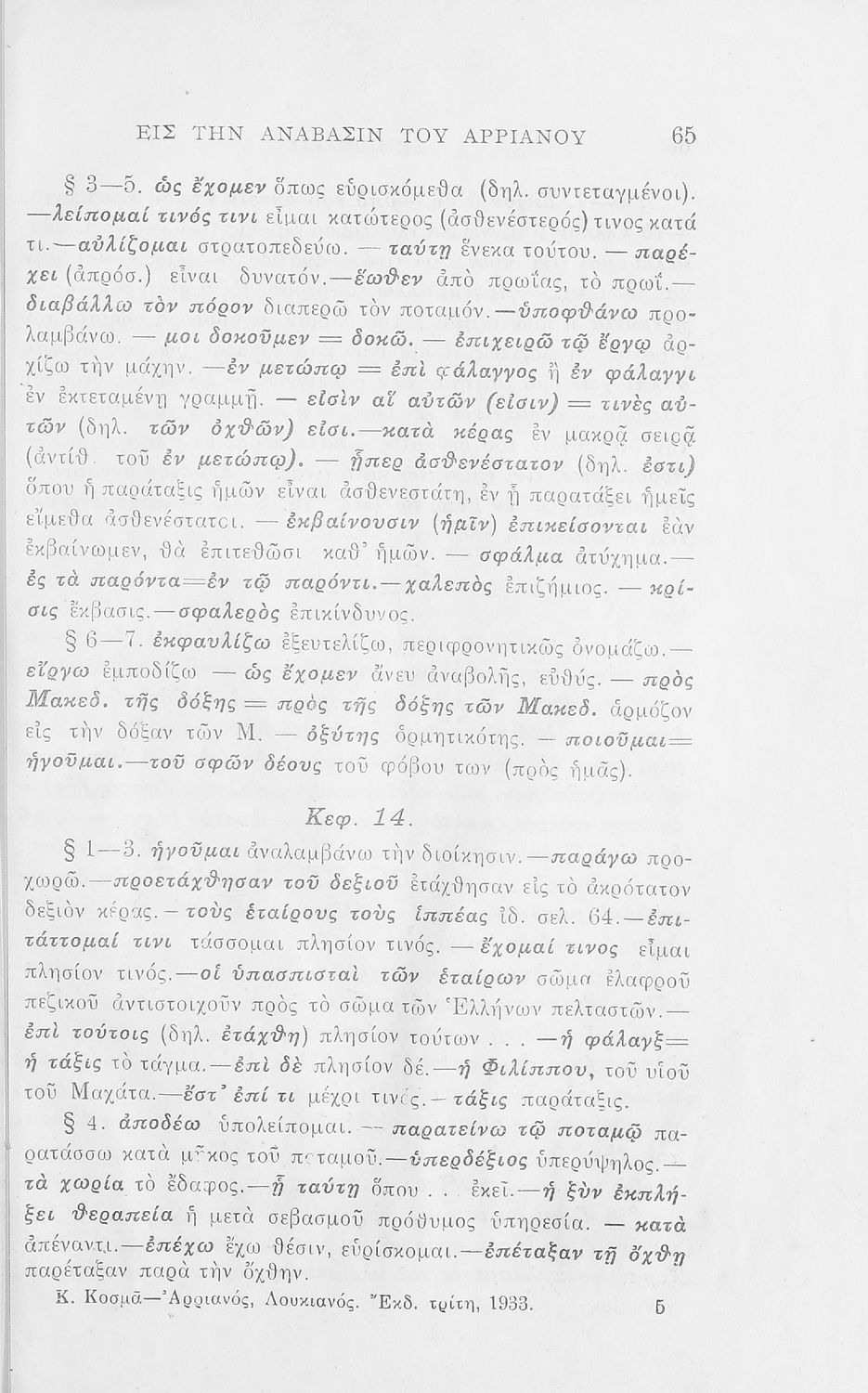520 ## _aΣχολικό εγχειρίδιο Αρχαίων Ελληνικών για τις Α΄ και Β΄ Γυμνασίου που περιλαμβάνει σύντομο βιογραφικό σημείωμα των Αρριανού και Λουκιανού, εισαγωγή στα έργα, αποσπάσματα από το πρώτο και δεύτερο βιβλίο της Ανάβασης του Αλέξανδρου και τους Νεκρικούς Διαλόγους και ετυμολογικές σημειώσεις.