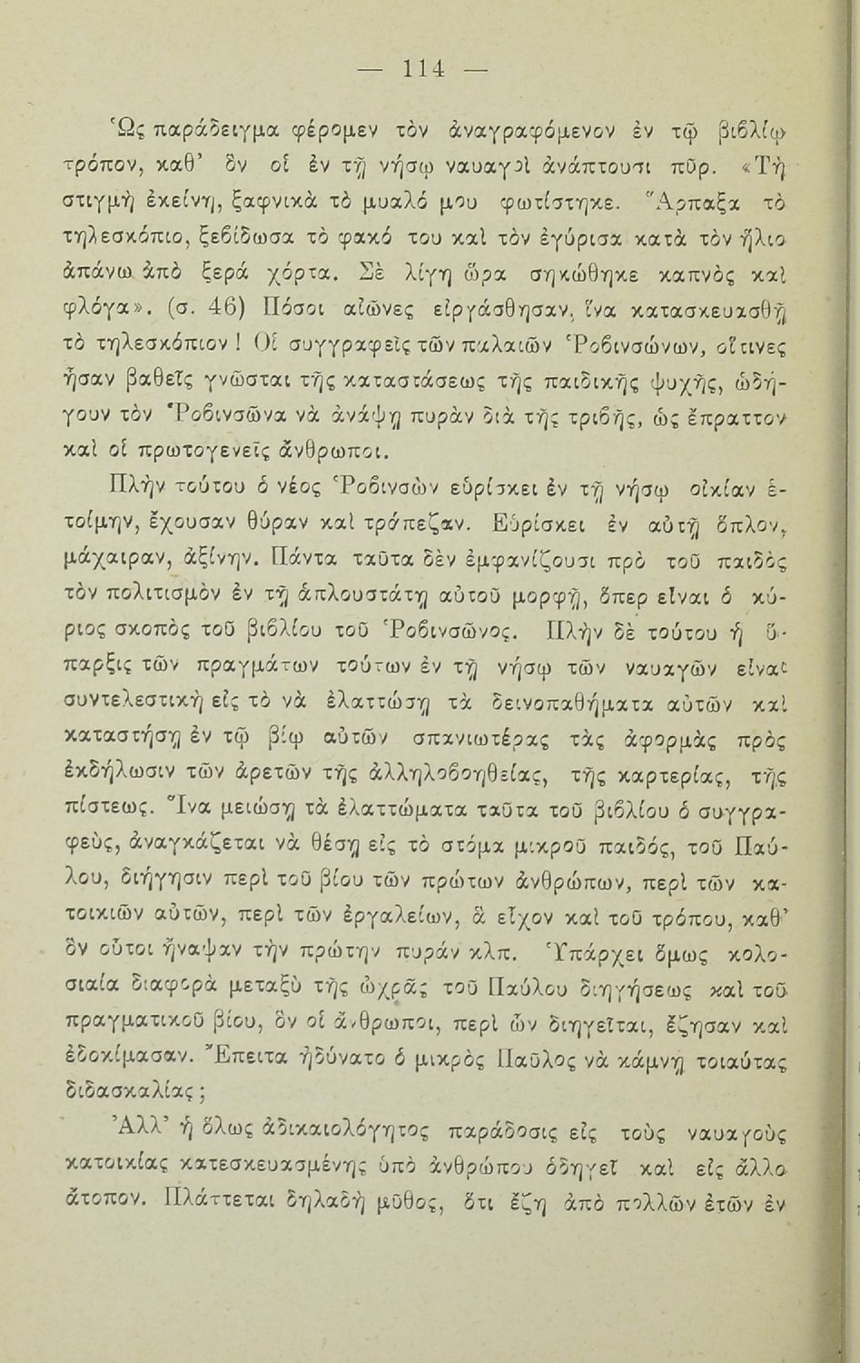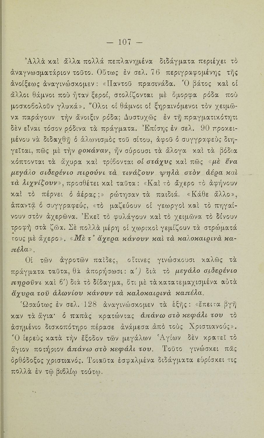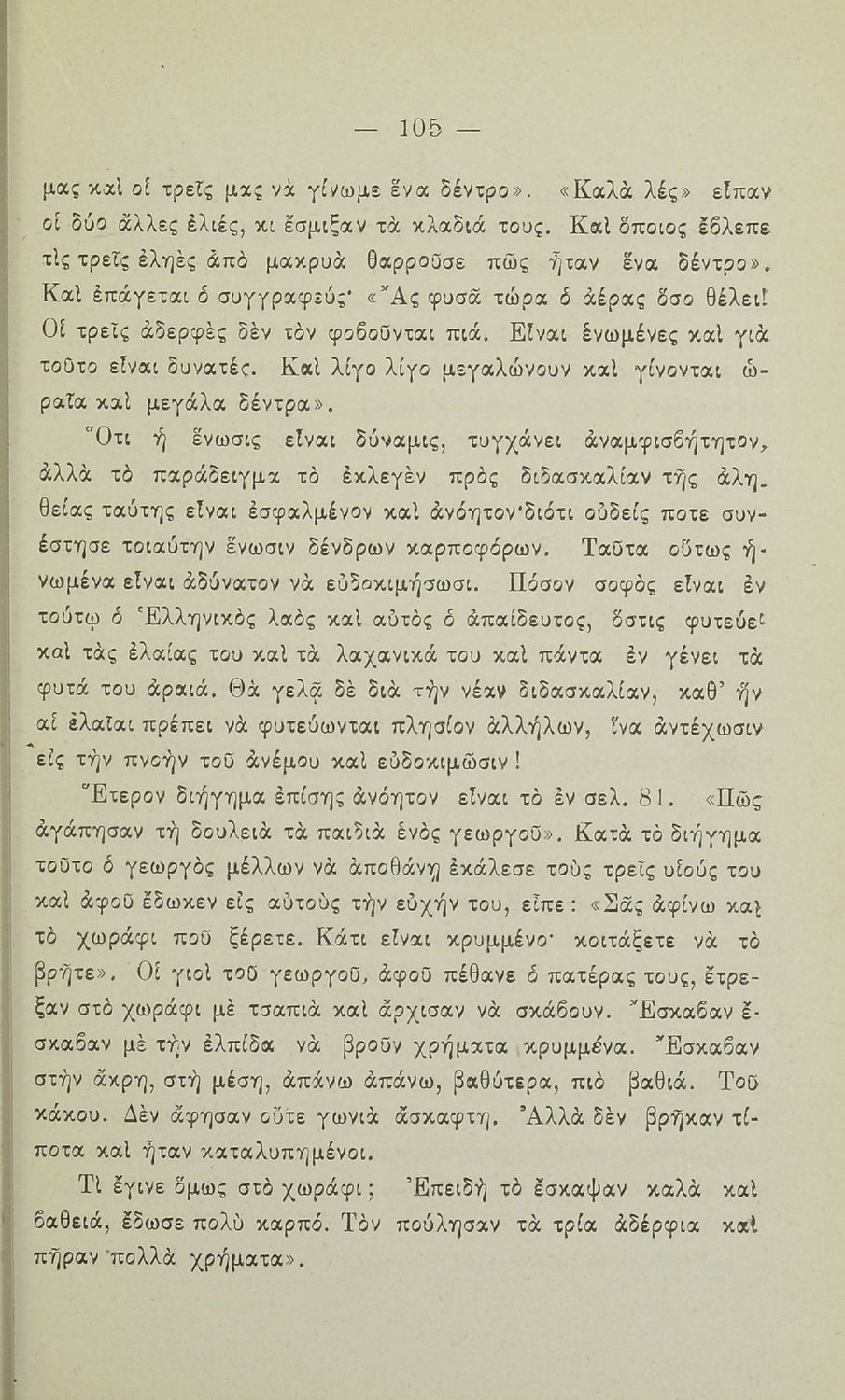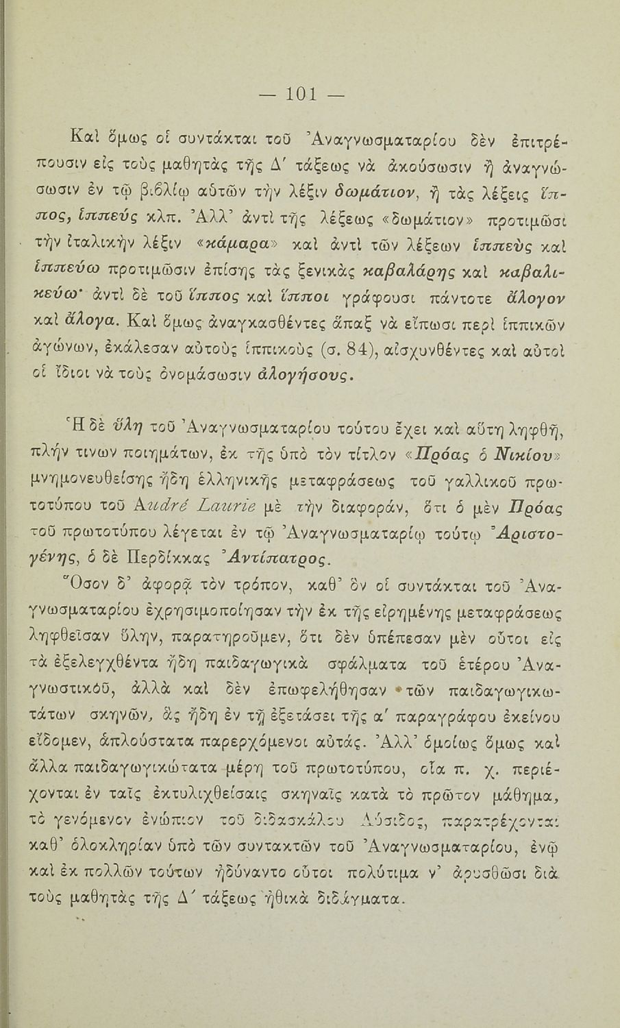 Γλώσσα: Καθαρεύουσα Παρουσίαση περιεχομένου: Εισηγητική έκθεση της επιτροπείας του Υπουργείου Θρησκευμάτων και Παιδείας, την οποία αποτελούσαν καθηγητές ένθερμοι υποστηρικτές της καθαρεύουσας, που εξαπολύει δριμεία κριτική στη γραμματική της δημοτικής και σε συγκεκριμένα αναγνωστικά Δημοτικού. Η γλώσσα είναι ιδιαίτερα σκληρή και επικριτική και χρησιμοποιούνται άκομψοι χαρακτηρισμοί, όπως " άθλιο, χυδαίο περιεχόμενο των αναγνωστικών βιβλίων". |