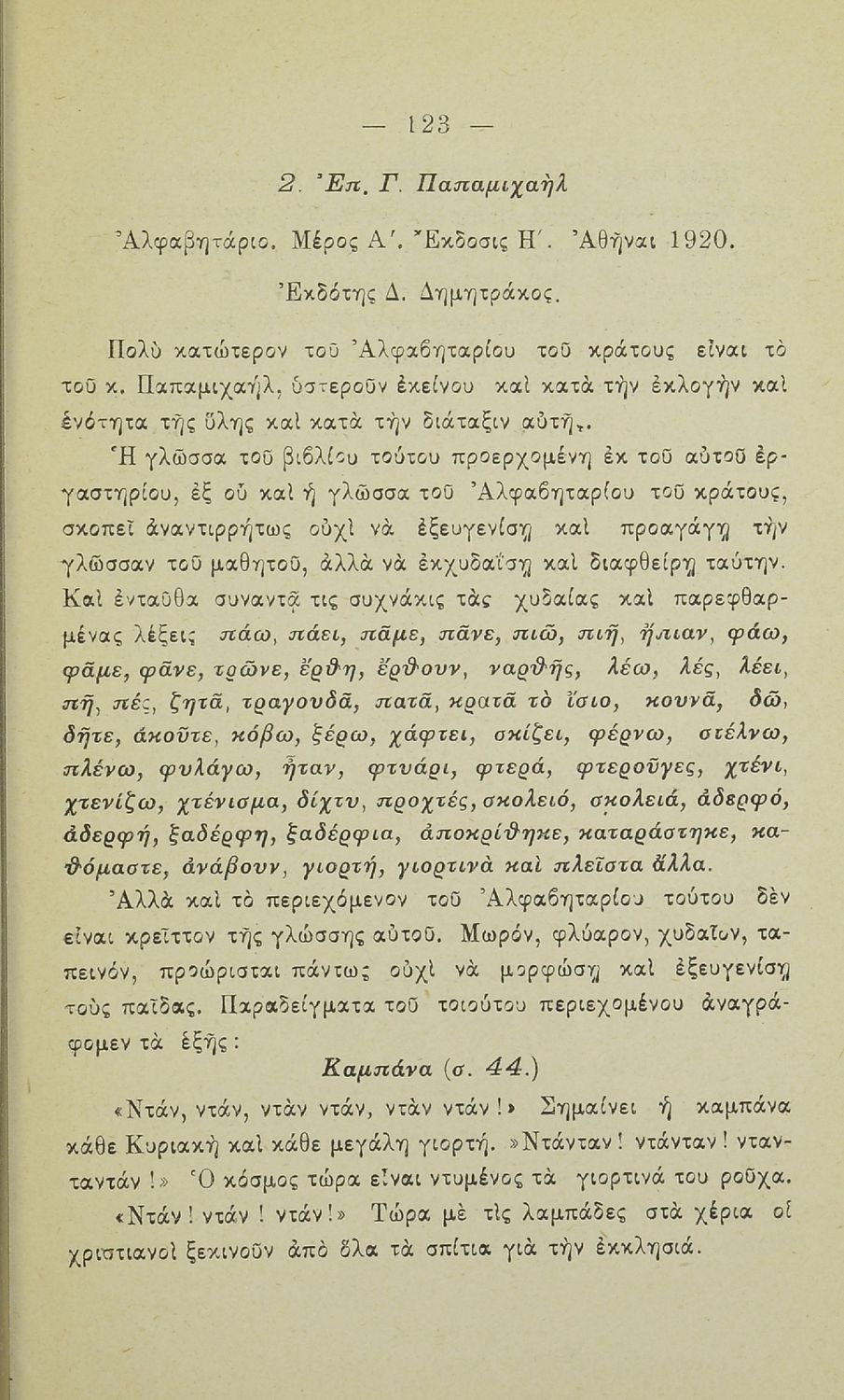 Έκθεσις της επιτροπείας της διορισθείσης προς εξέτασιν της γλωσσικής διδασκαλίας των Δημοτικών Σχολείων