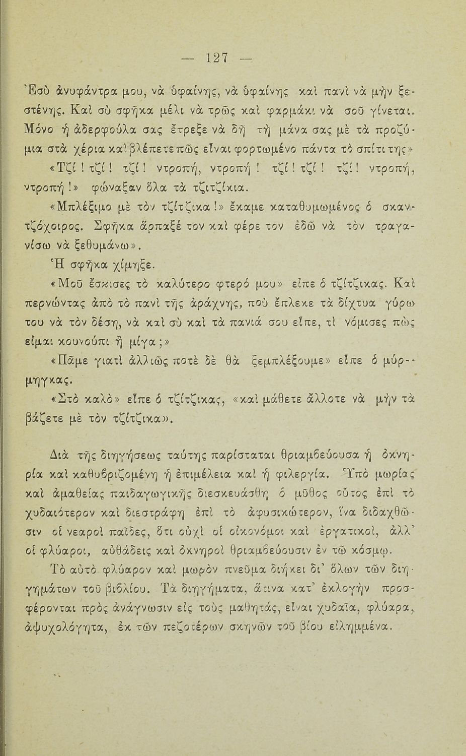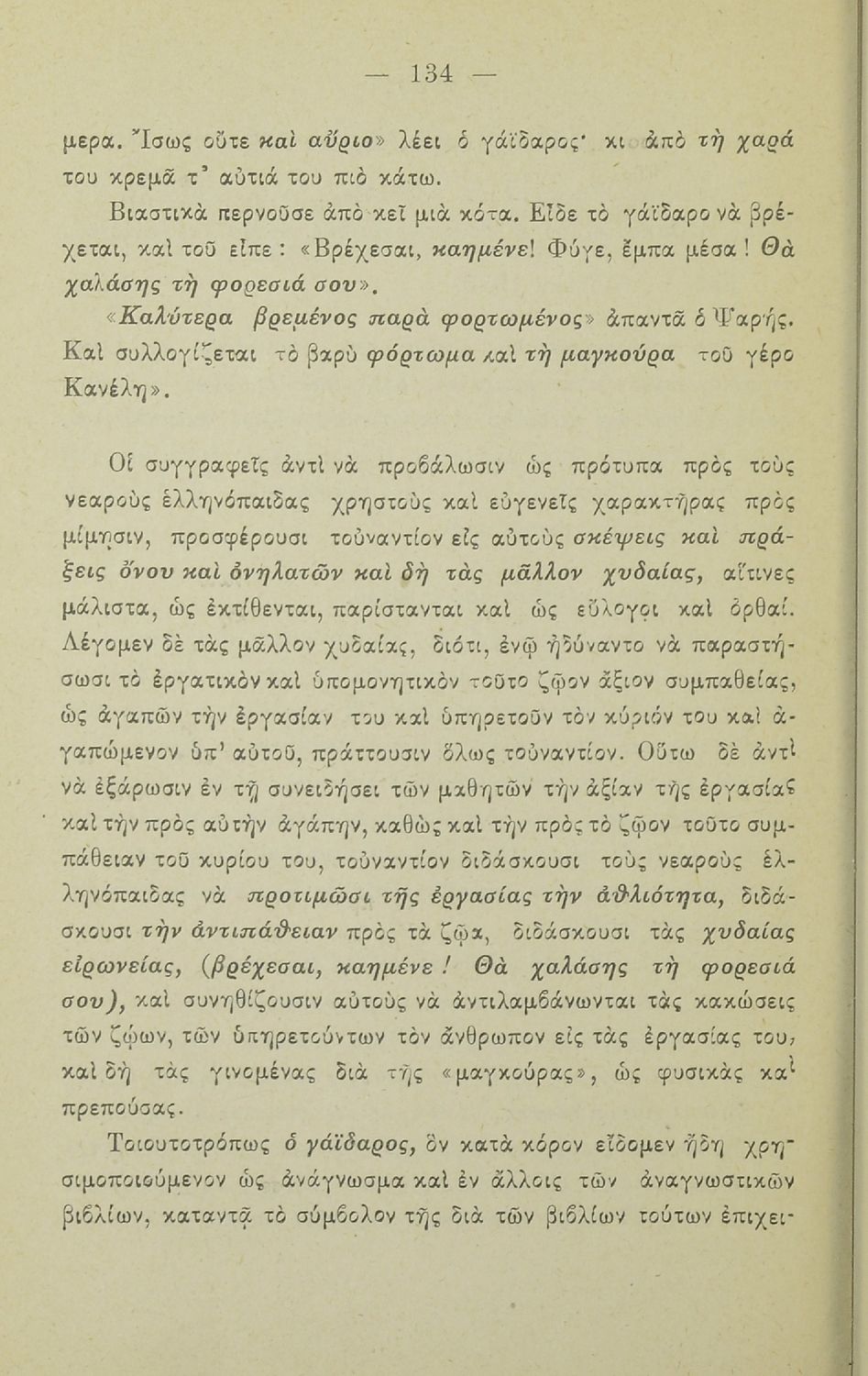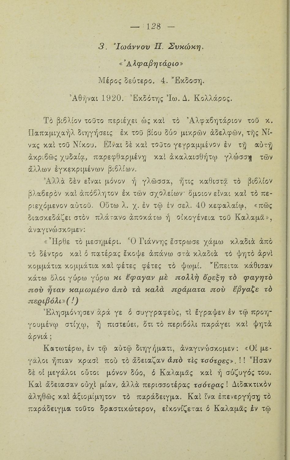 Παρουσίαση περιεχομένου: Εισηγητική έκθεση της επιτροπείας του Υπουργείου Θρησκευμάτων και Παιδείας, την οποία αποτελούσαν καθηγητές ένθερμοι υποστηρικτές της καθαρεύουσας, που εξαπολύει δριμεία κριτική στη γραμματική της δημοτικής και σε συγκεκριμένα αναγνωστικά Δημοτικού. Η γλώσσα είναι ιδιαίτερα σκληρή και επικριτική και χρησιμοποιούνται άκομψοι χαρακτηρισμοί, όπως " άθλιο, χυδαίο περιεχόμενο των αναγνωστικών βιβλίων".