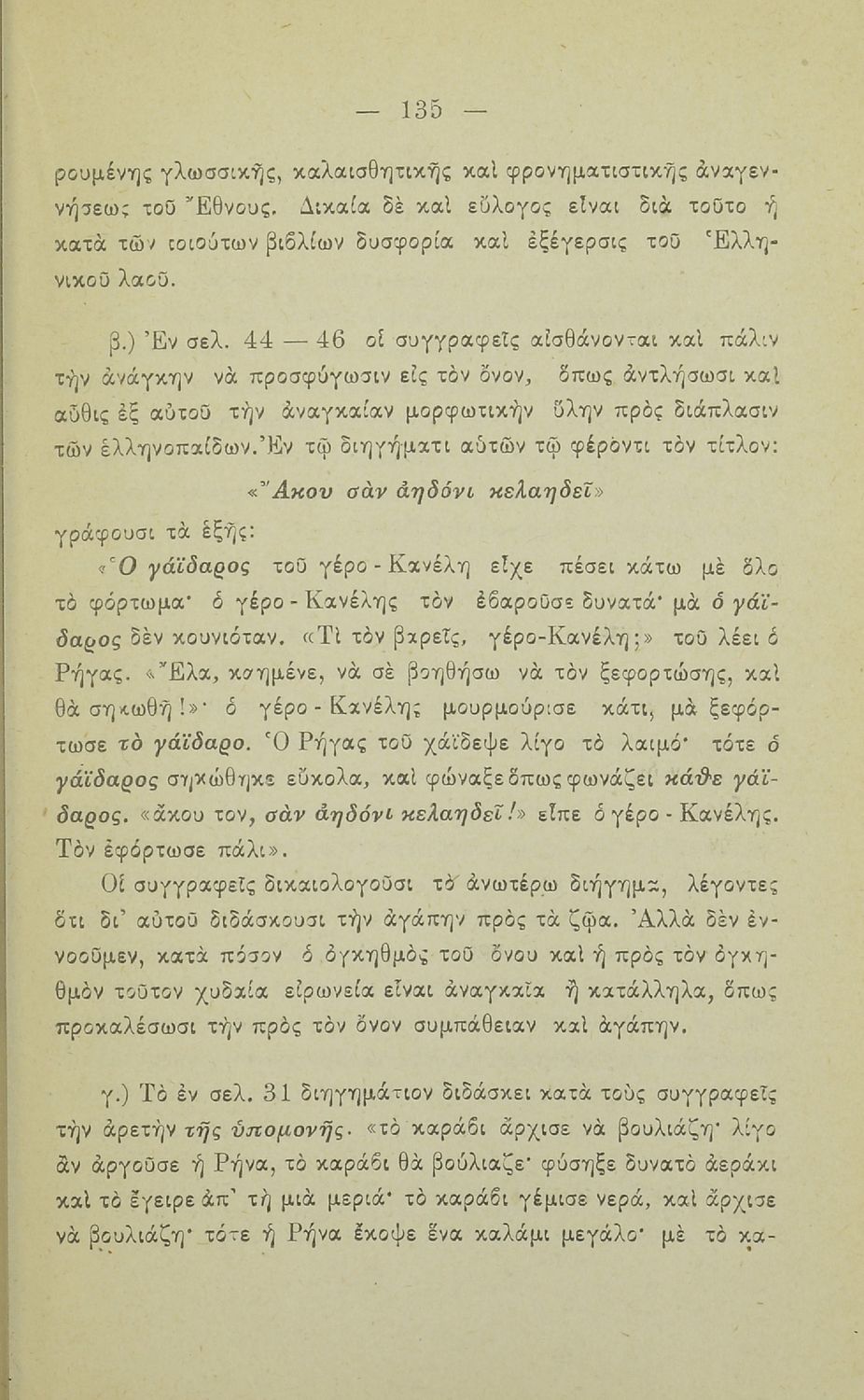 Εισηγητική έκθεση της επιτροπείας του Υπουργείου Θρησκευμάτων και Παιδείας, την οποία αποτελούσαν καθηγητές ένθερμοι υποστηρικτές της καθαρεύουσας, που εξαπολύει δριμεία κριτική στη γραμματική της δημοτικής και σε συγκεκριμένα αναγνωστικά Δημοτικού. Η γλώσσα είναι ιδιαίτερα σκληρή και επικριτική και χρησιμοποιούνται άκομψοι χαρακτηρισμοί, όπως " άθλιο, χυδαίο περιεχόμενο των αναγνωστικών βιβλίων".