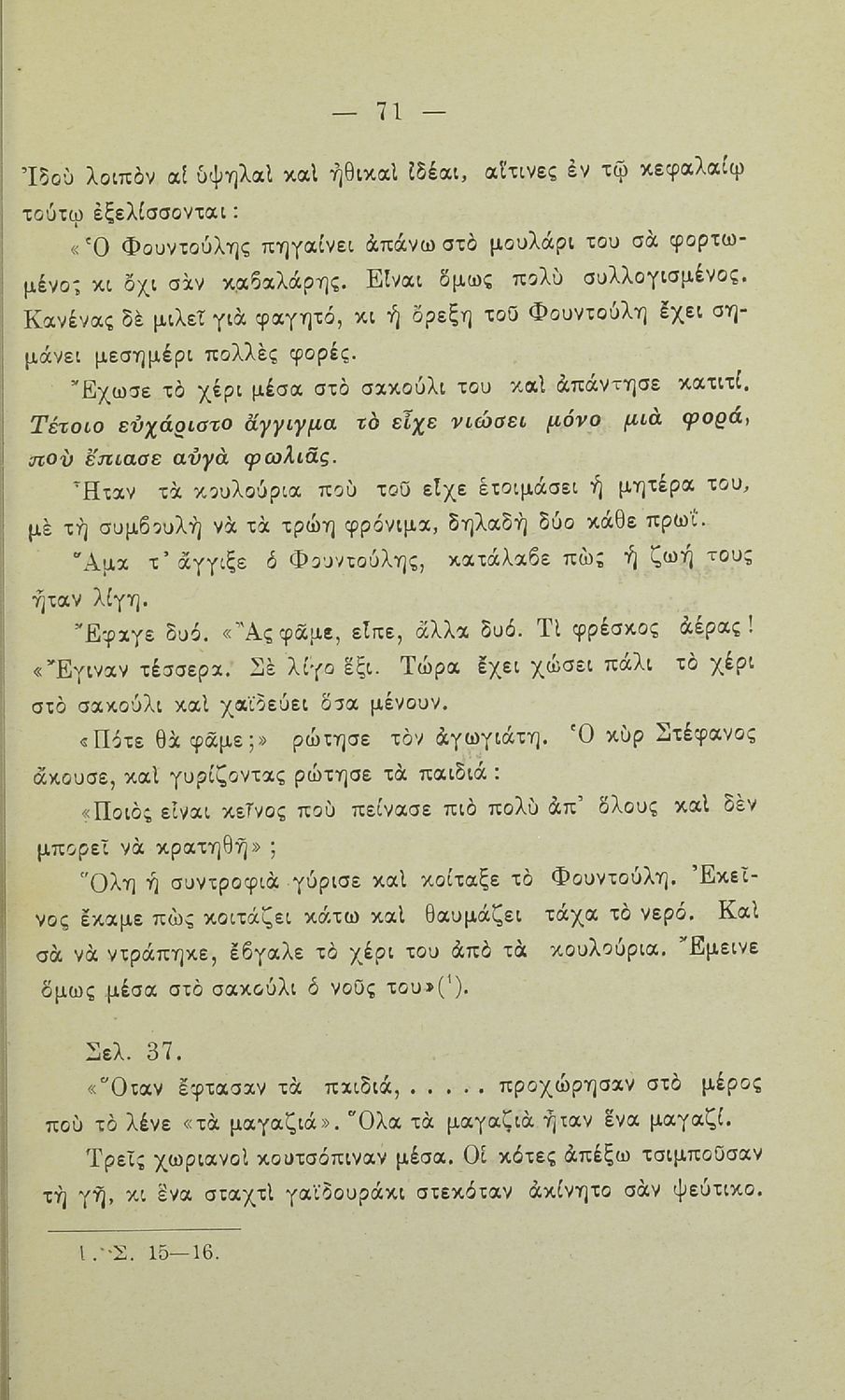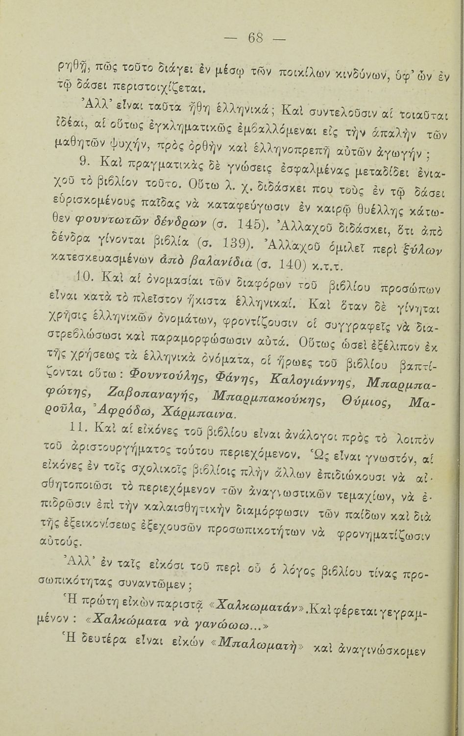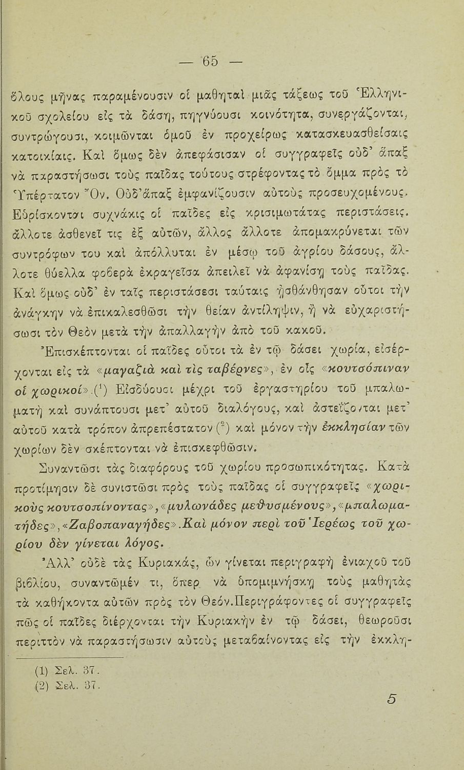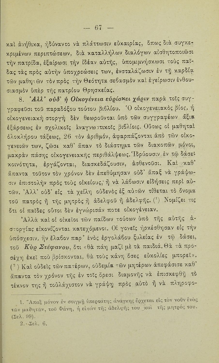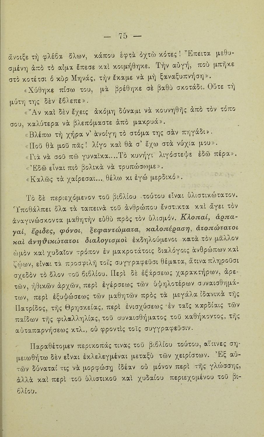 Παρουσίαση περιεχομένου: Εισηγητική έκθεση της επιτροπείας του Υπουργείου Θρησκευμάτων και Παιδείας, την οποία αποτελούσαν καθηγητές ένθερμοι υποστηρικτές της καθαρεύουσας, που εξαπολύει δριμεία κριτική στη γραμματική της δημοτικής και σε συγκεκριμένα αναγνωστικά Δημοτικού. Η γλώσσα είναι ιδιαίτερα σκληρή και επικριτική και χρησιμοποιούνται άκομψοι χαρακτηρισμοί, όπως " άθλιο, χυδαίο περιεχόμενο των αναγνωστικών βιβλίων".