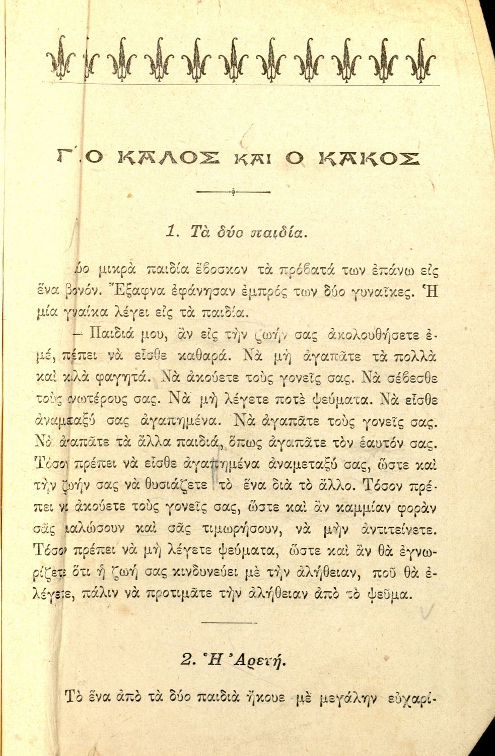 LDR 01367 2200193 4500 035 ## _a20-00606 040 ## _aΚΕΝΕΚ - Εταιρεία Σπουδών Νεοελληνικού Πολιτισμού και Παιδείας 041 ## _ael 100 ## _aΟικουμενικόν Πατριαρχείον Π.Κ. Εκπαιδευτική Επιτροπή 110 ## _a606 245 0# _aΑναγνωσματάριον Α΄ Δημοτικού 260 ## _aΚωνσταντινούπολη _bΟικουμενικόν Πατριαρχείον _c1914 300 ## _a116 _bΣκίτσα (ασπρόμαυρα) _c18 520 ## _aΑναγνωστικό Α΄ Δημοτικού που περιλαμβάνει εικόνες και γράμματα για την εκμάθηση του ελληνικού αλφάβητου και μικρές ιστορίες με θέματα από την οικογενειακή ζωή, τον κόσμο των ζώων, των φυτών, των εποχών και της θρησκευτικής παράδοσης. 521 ## _aΑ' Δημοτικού 522 ## _aΈξω ελληνισμός 546 ## _aΑπλή καθαρεύουσα 563 ## _aΜαλακό Εξώφυλλο 650 #4 _aΒροχή _aΓράμματα _aΗ μάννα με τα τέσσερα παιδιά _aΚουκουβάγια _aΛέξεις _aΠτηνά _aΤο αγγελάκι