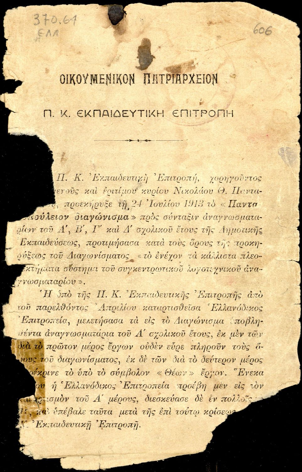 Εντοπισμός πρωτοτύπου: ΚΕΝΕΚ - Εταιρεία Σπουδών Νεοελληνικού Πολιτισμού και Παιδείας Κωδικός βιβλιοθήκης: 606 |