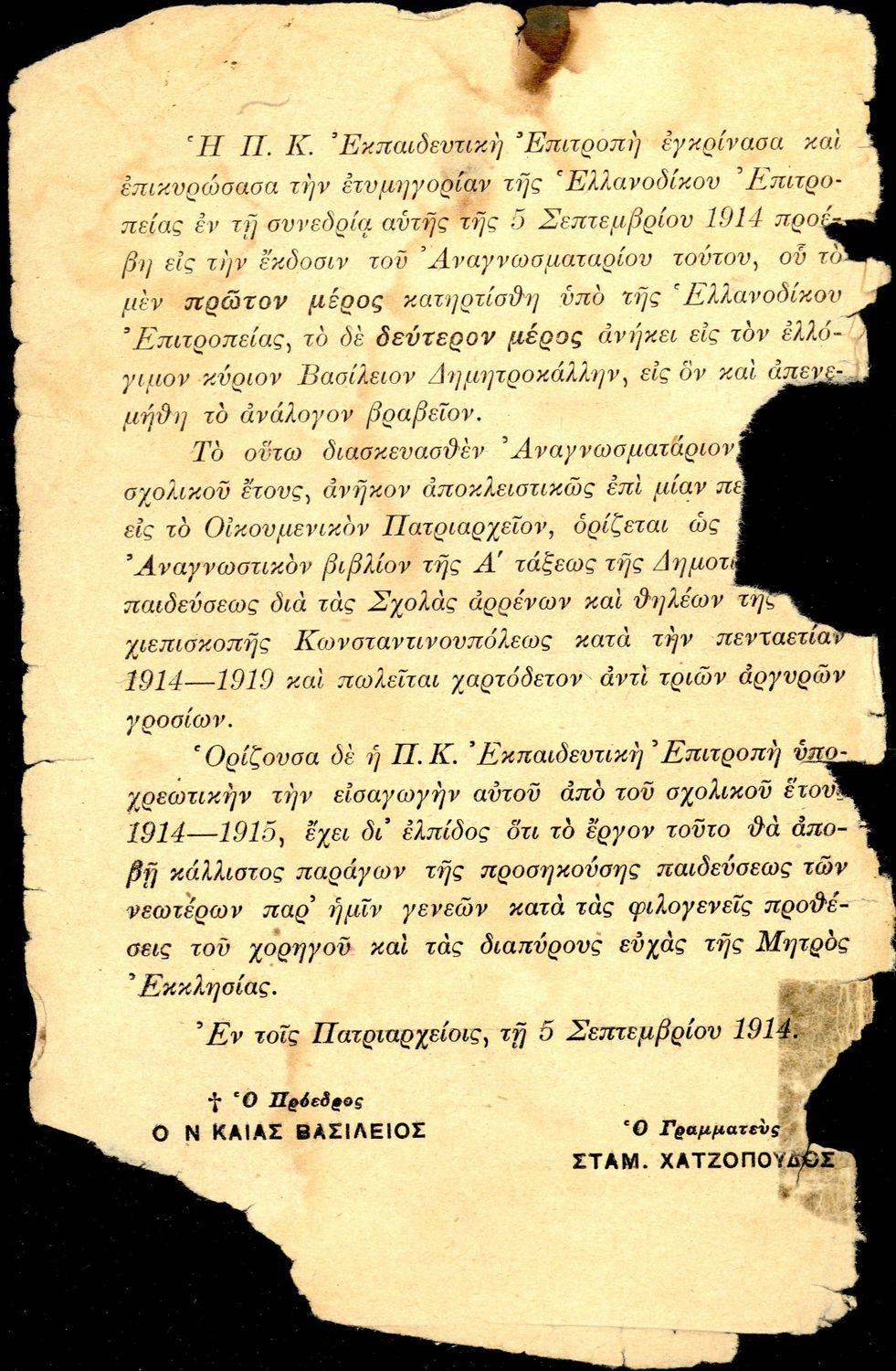 Εκδότης: Οικουμενικόν Πατριαρχείον Έτος έκδοσης: 1914 Τόπος έκδοσης: Κωνσταντινούπολη |